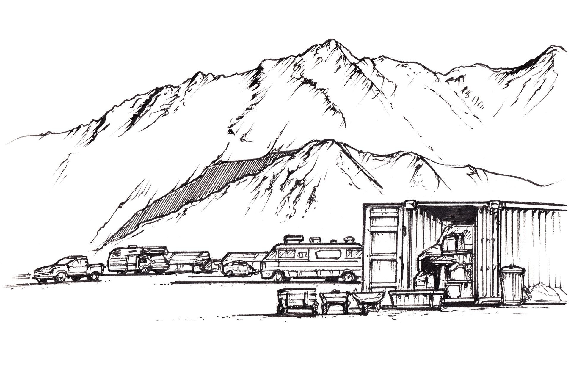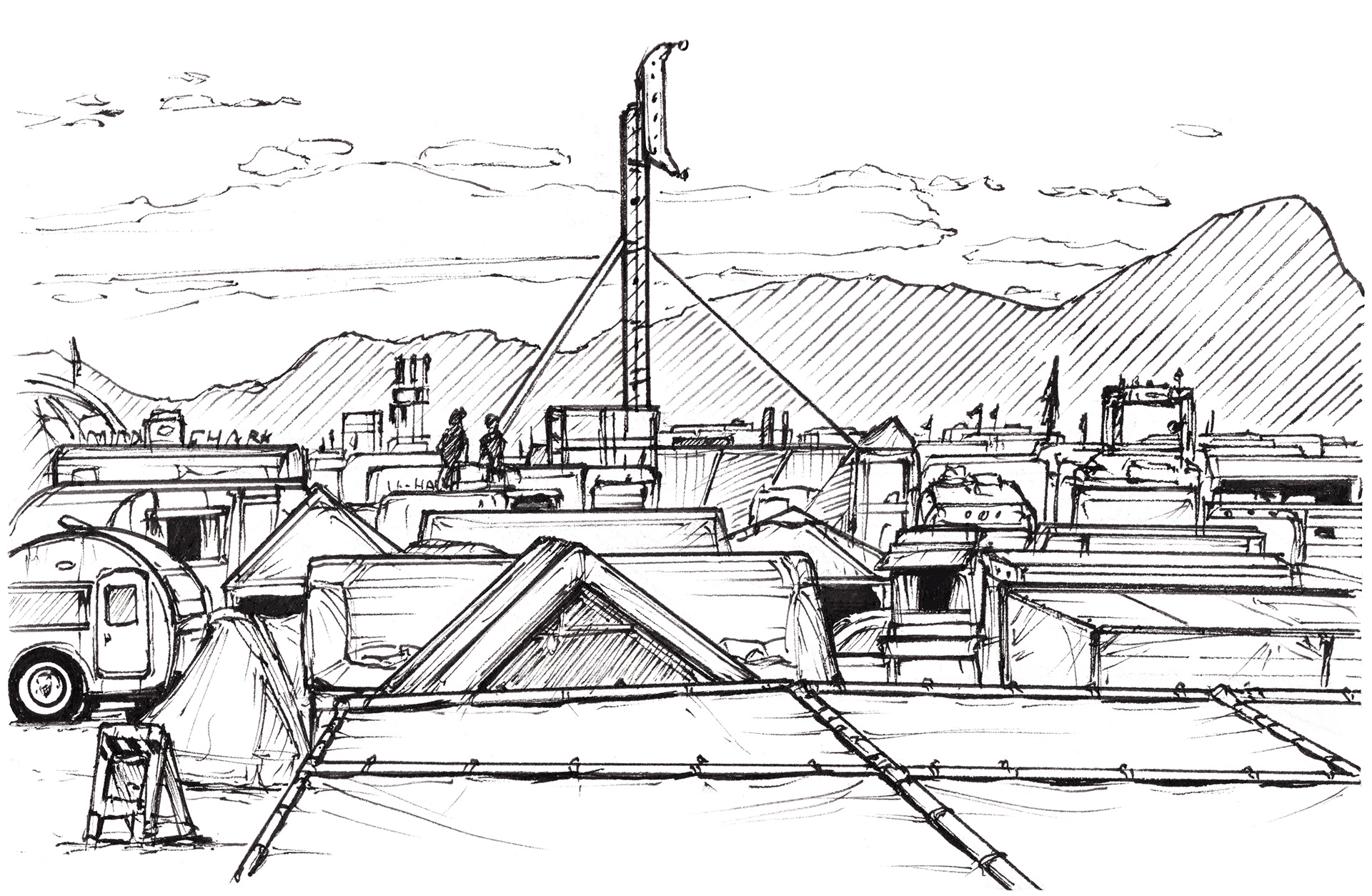 I take a sketchbook when I go on trips into the wilderness. Below are select pen drawings from camping trips and burns.