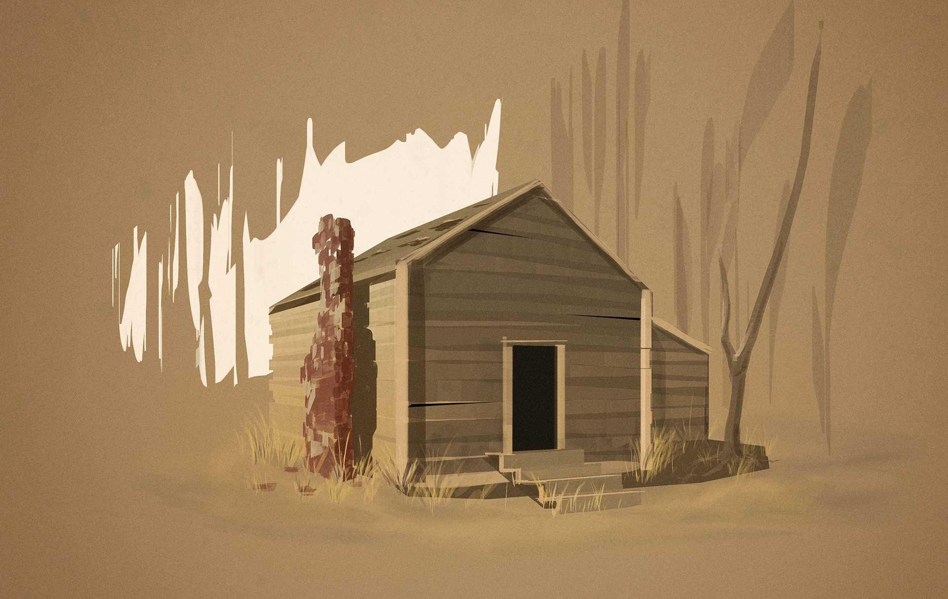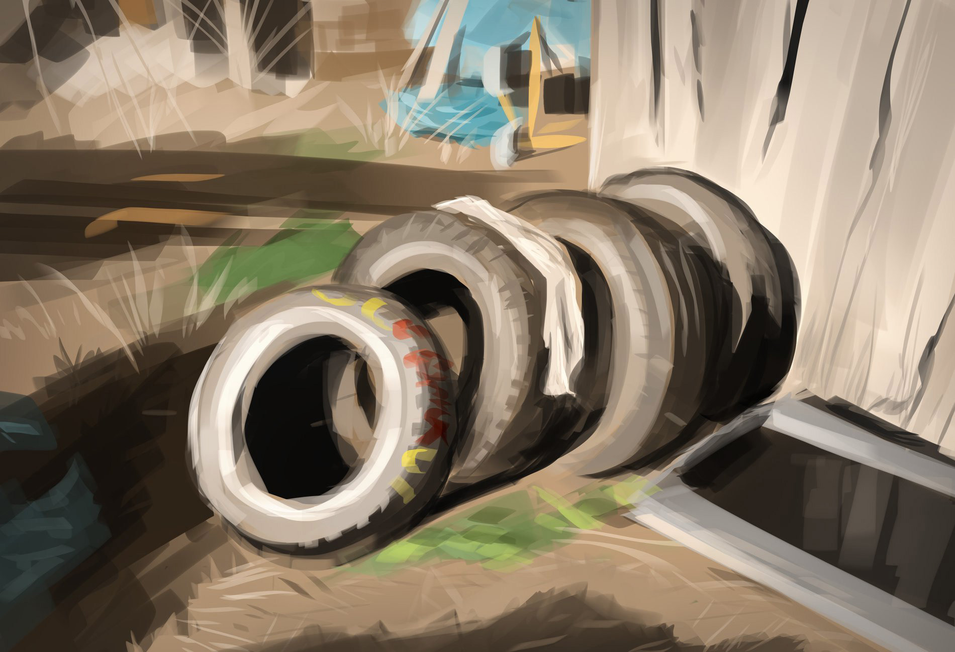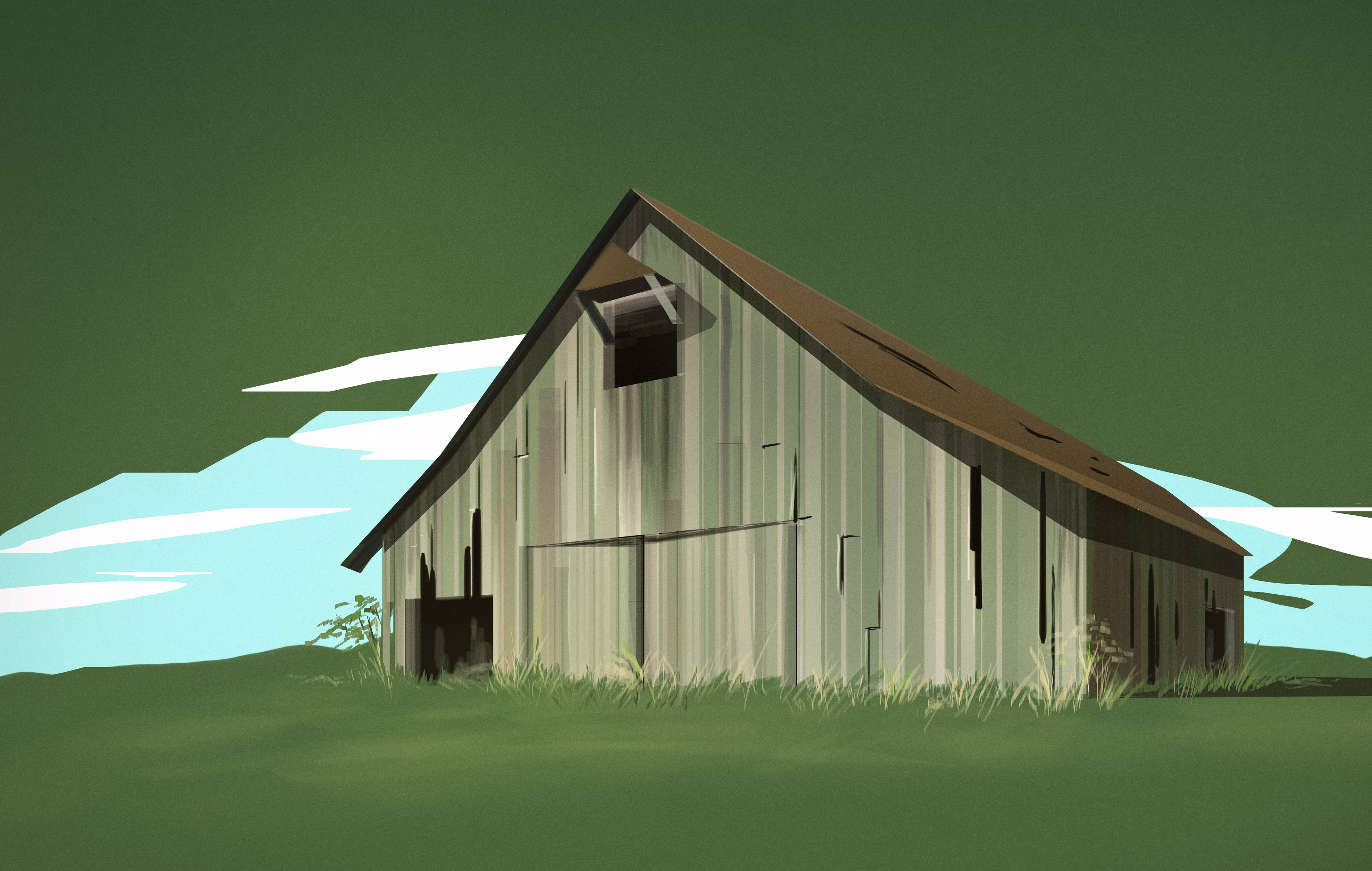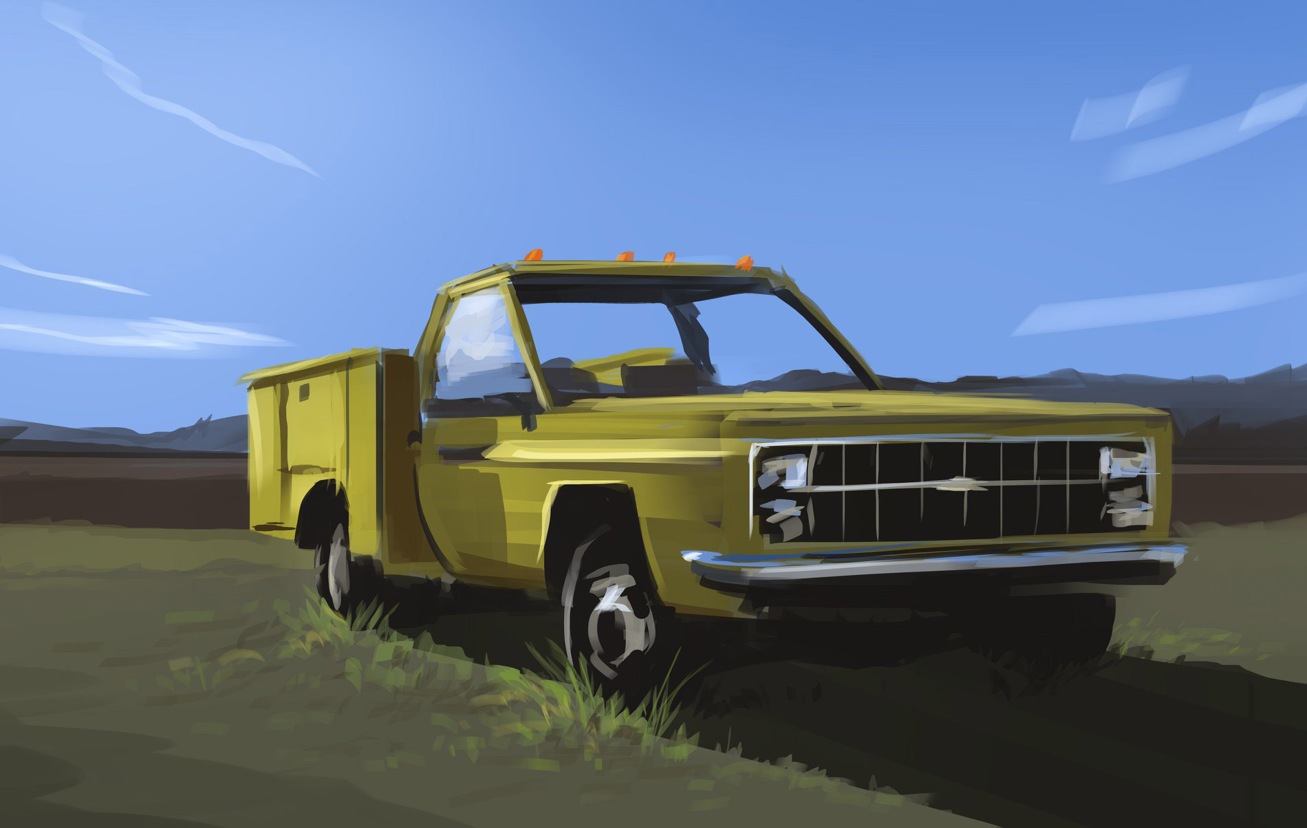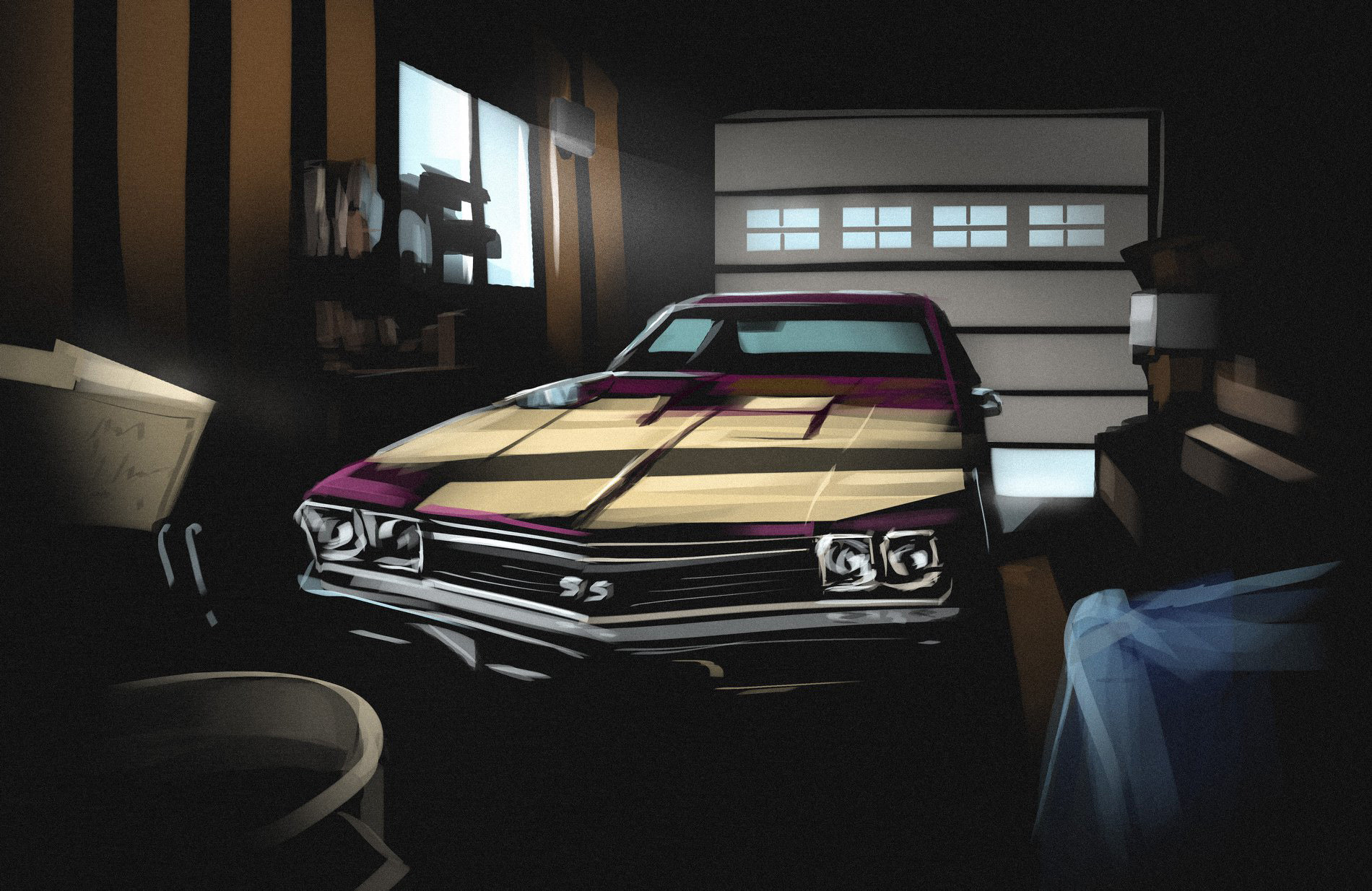 Digital environment paintings of rural Indiana, from garaged muscle cars to graveyard sunsets.