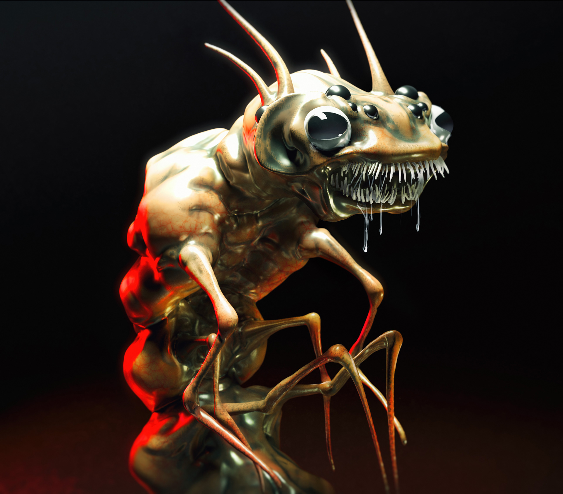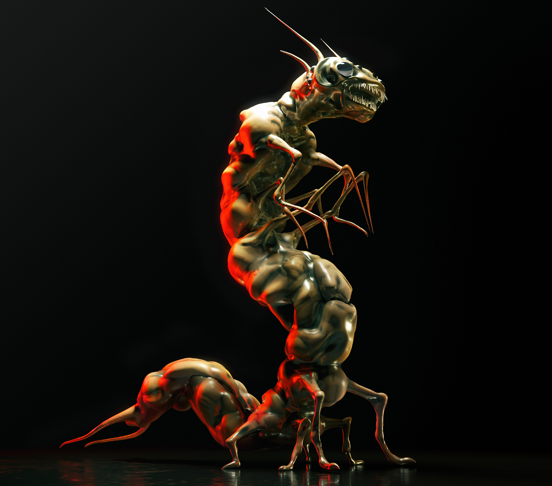 I designed this creature as part of a personal project. These 12-foot tall hauntingly intelligent parasites nest in suburban houses. Sculpted in ZBrush, rendered in Cinema 4D + Octane, post-production in Photoshop.