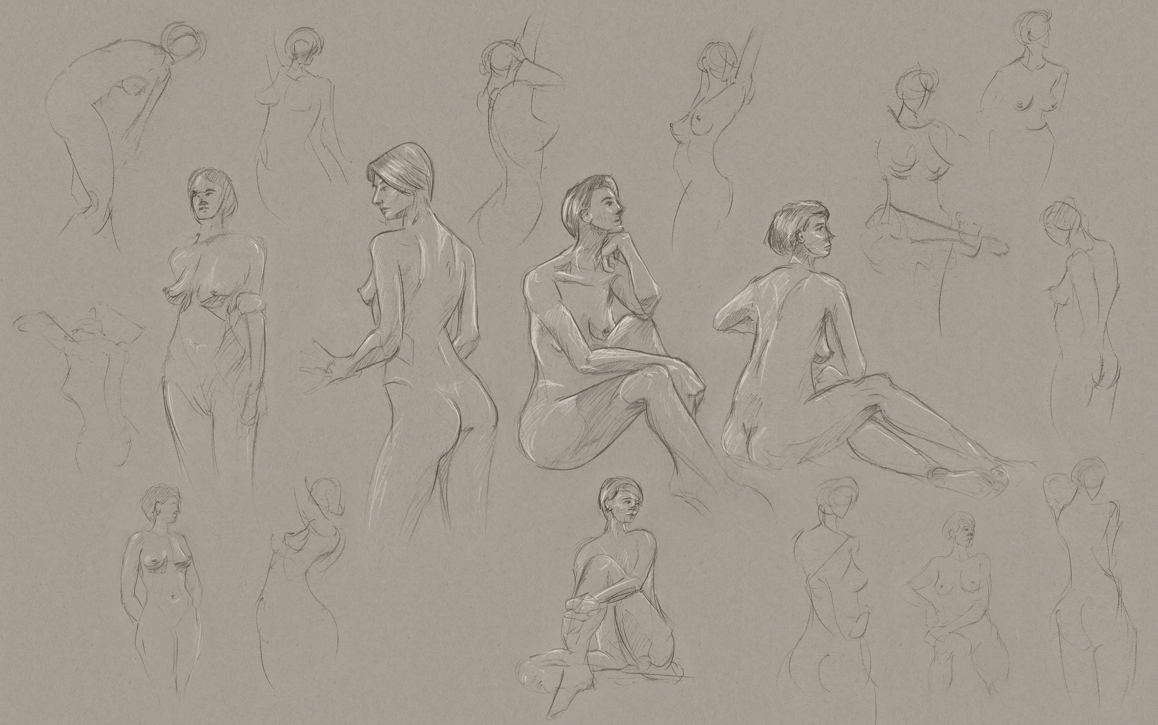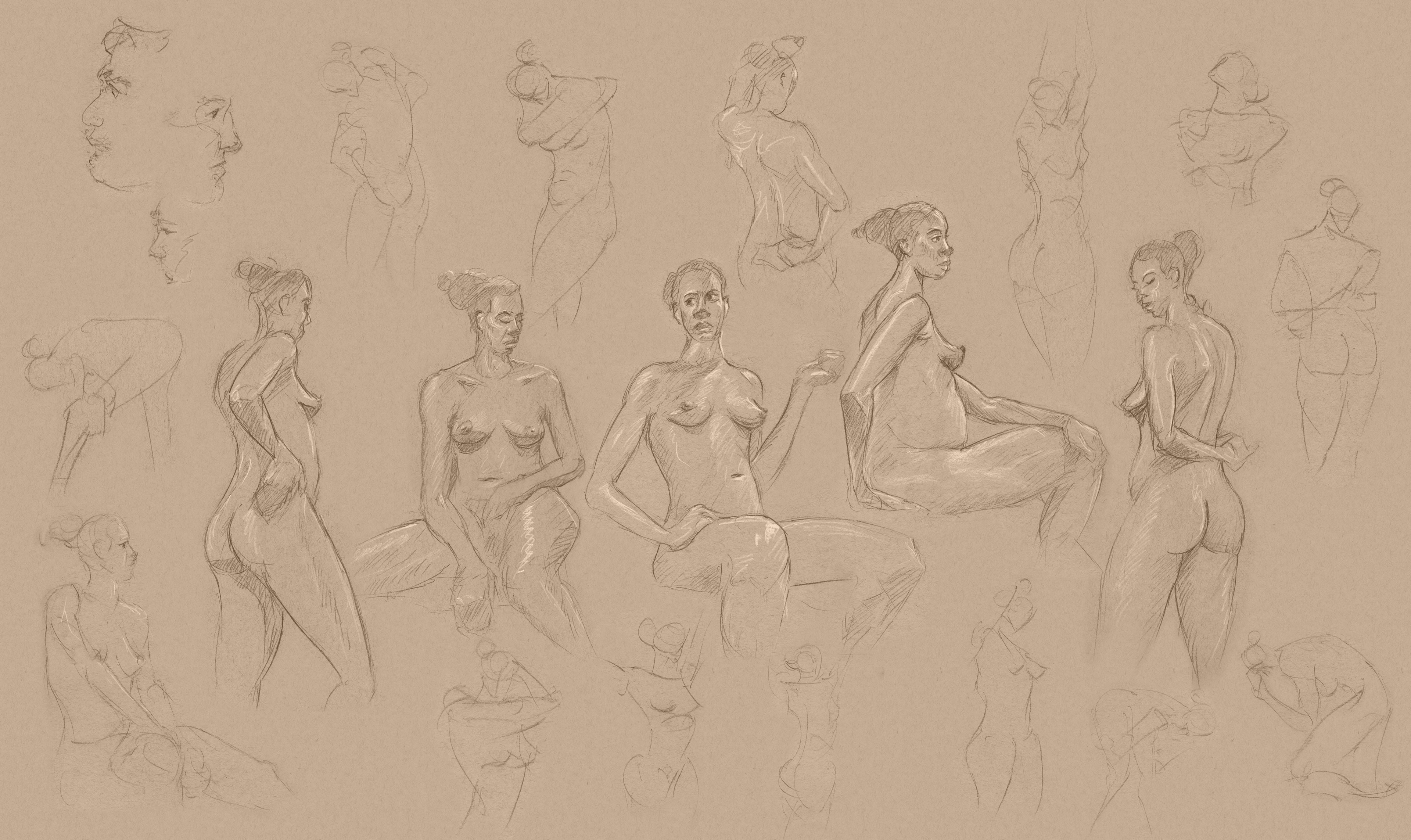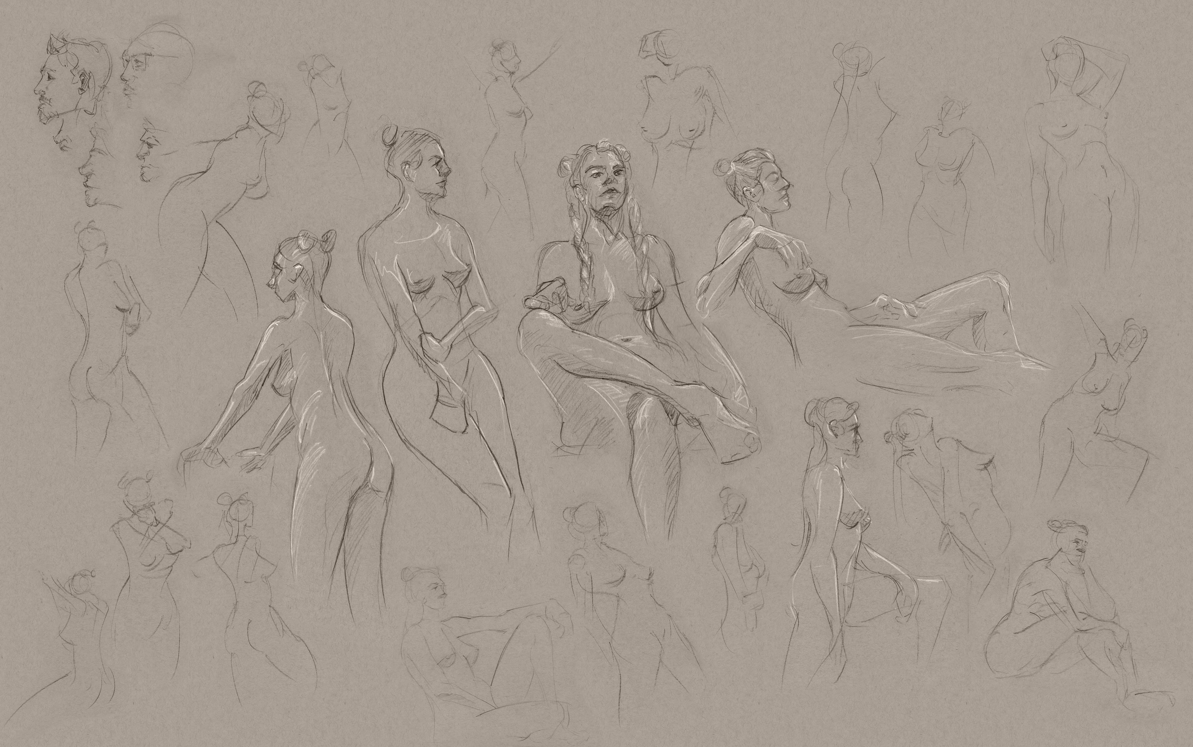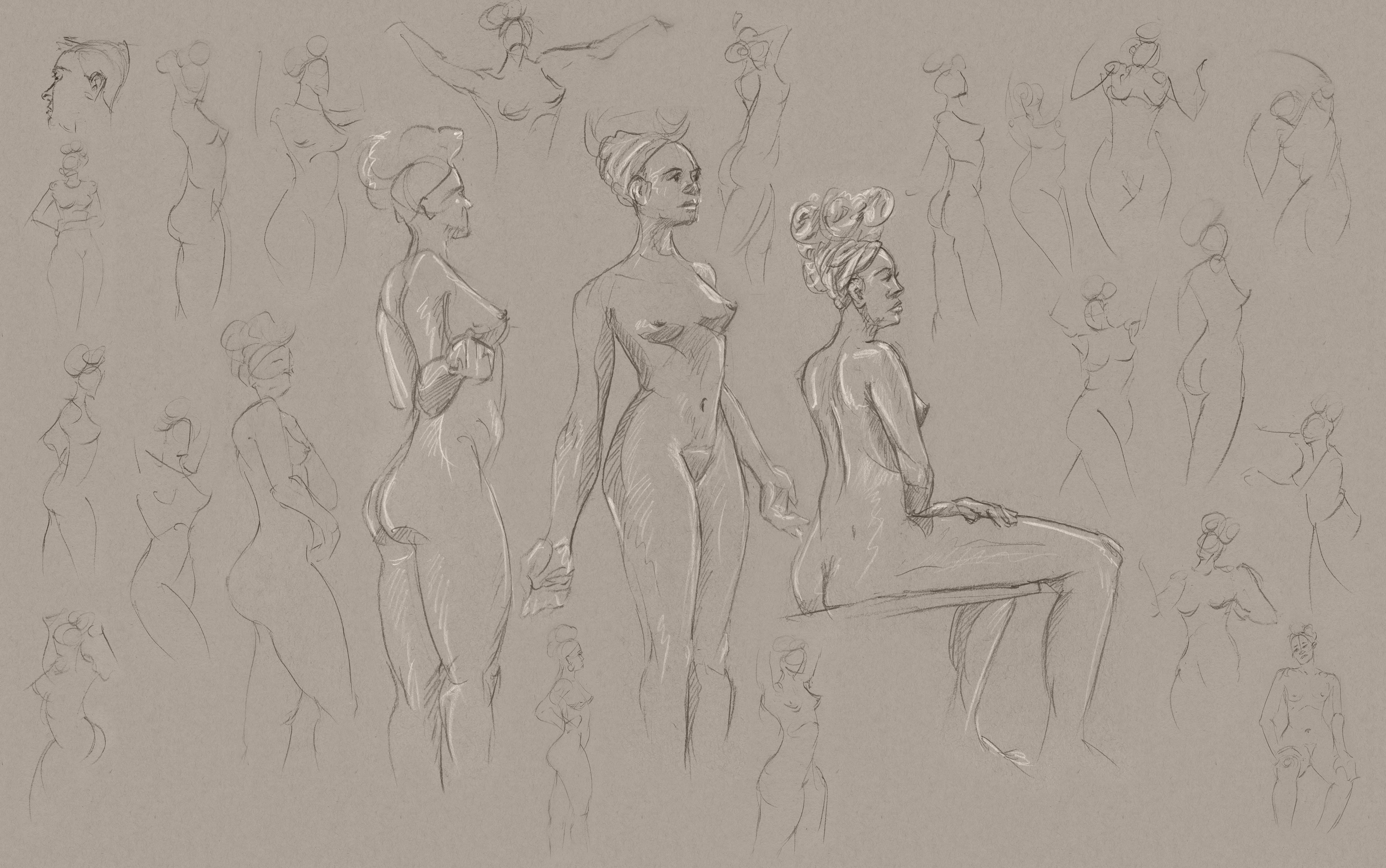 I went to a weekly figure drawing session for a few years, and below are some of the results, along with a few other drawings.