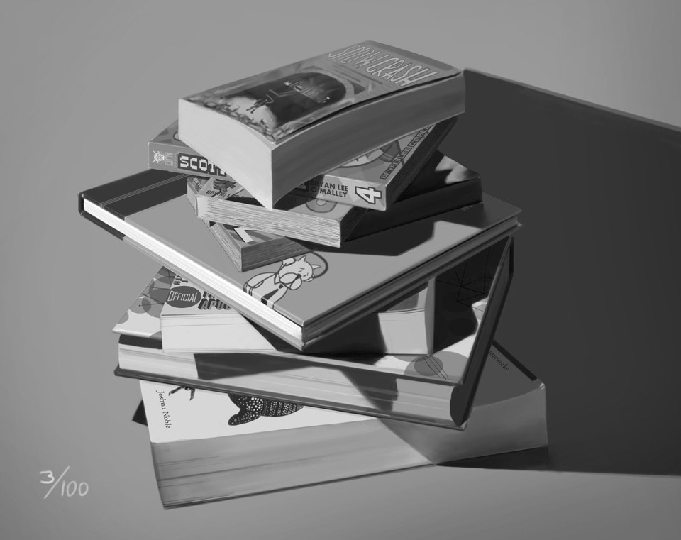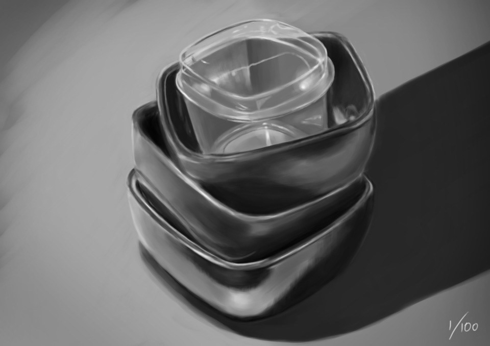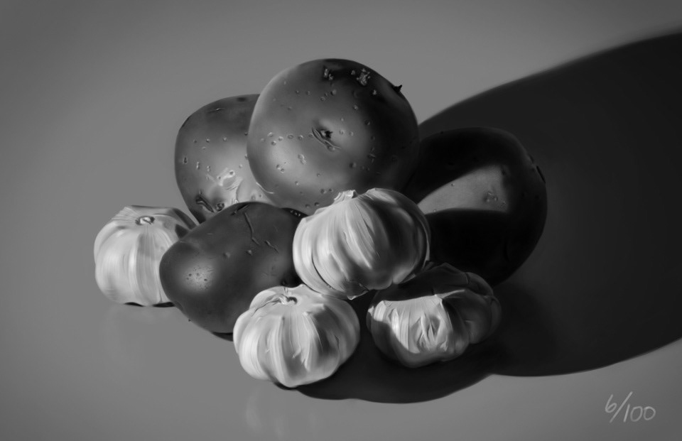 Photoshop digital paintings of autumnal decorative gourds, followed by some grayscale still lifes! You can divine the order in which I painted the potatoes based on how much each potato's eyes have grown out.