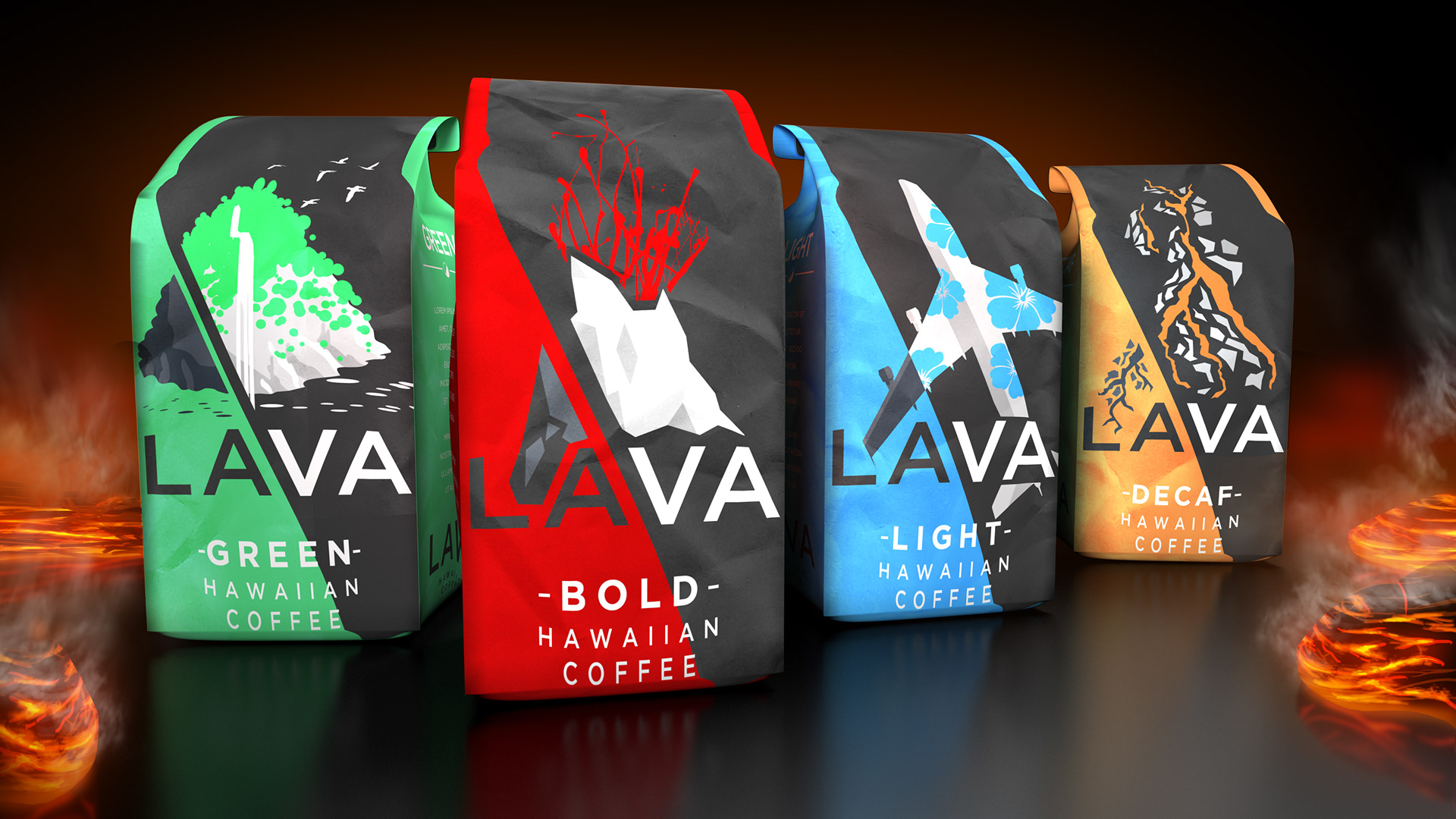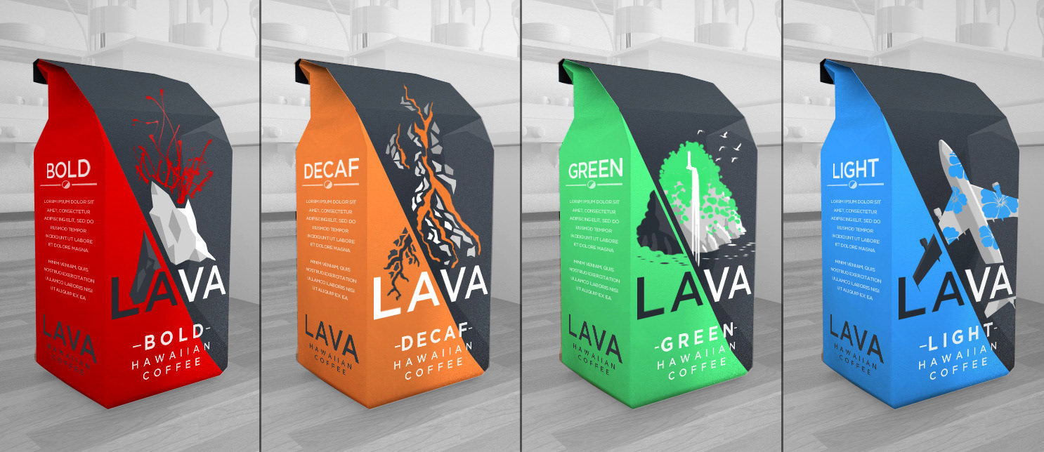 My Stirred Coffee project led to the design of this coffee brand. I took the Hawaiian coffee theme and ran with it, resulting in a unified and creative theme through each bag. Click the images for the full size version.