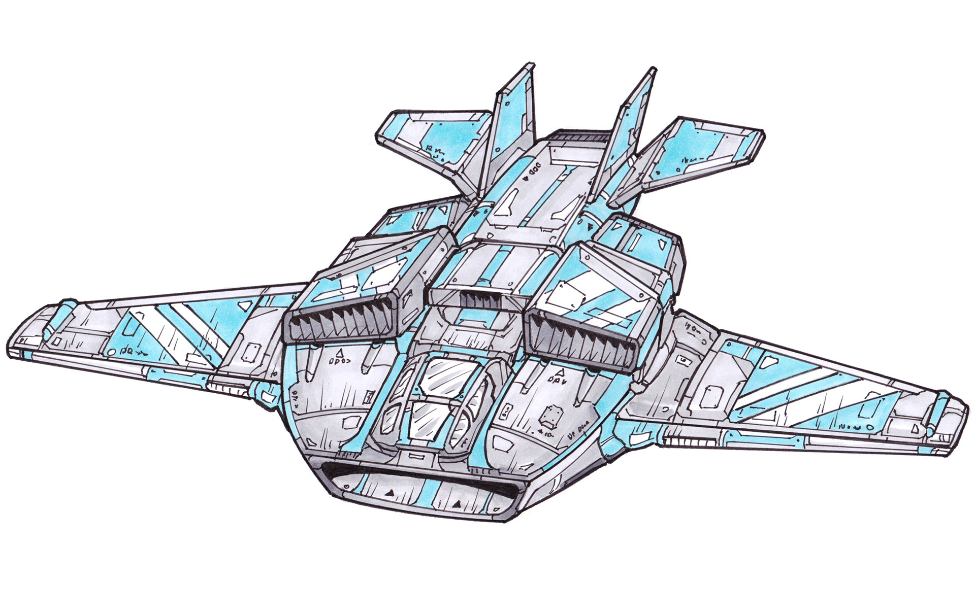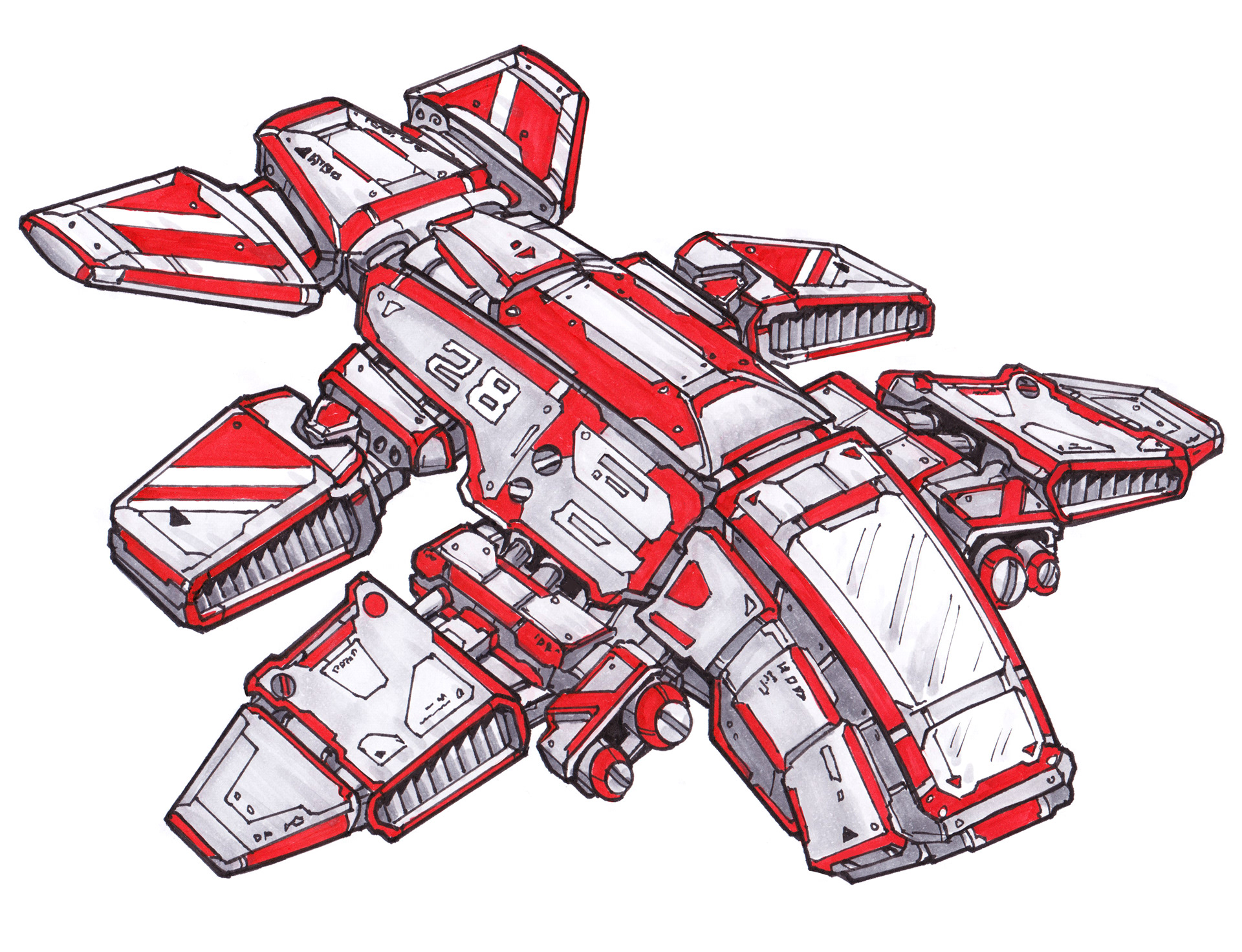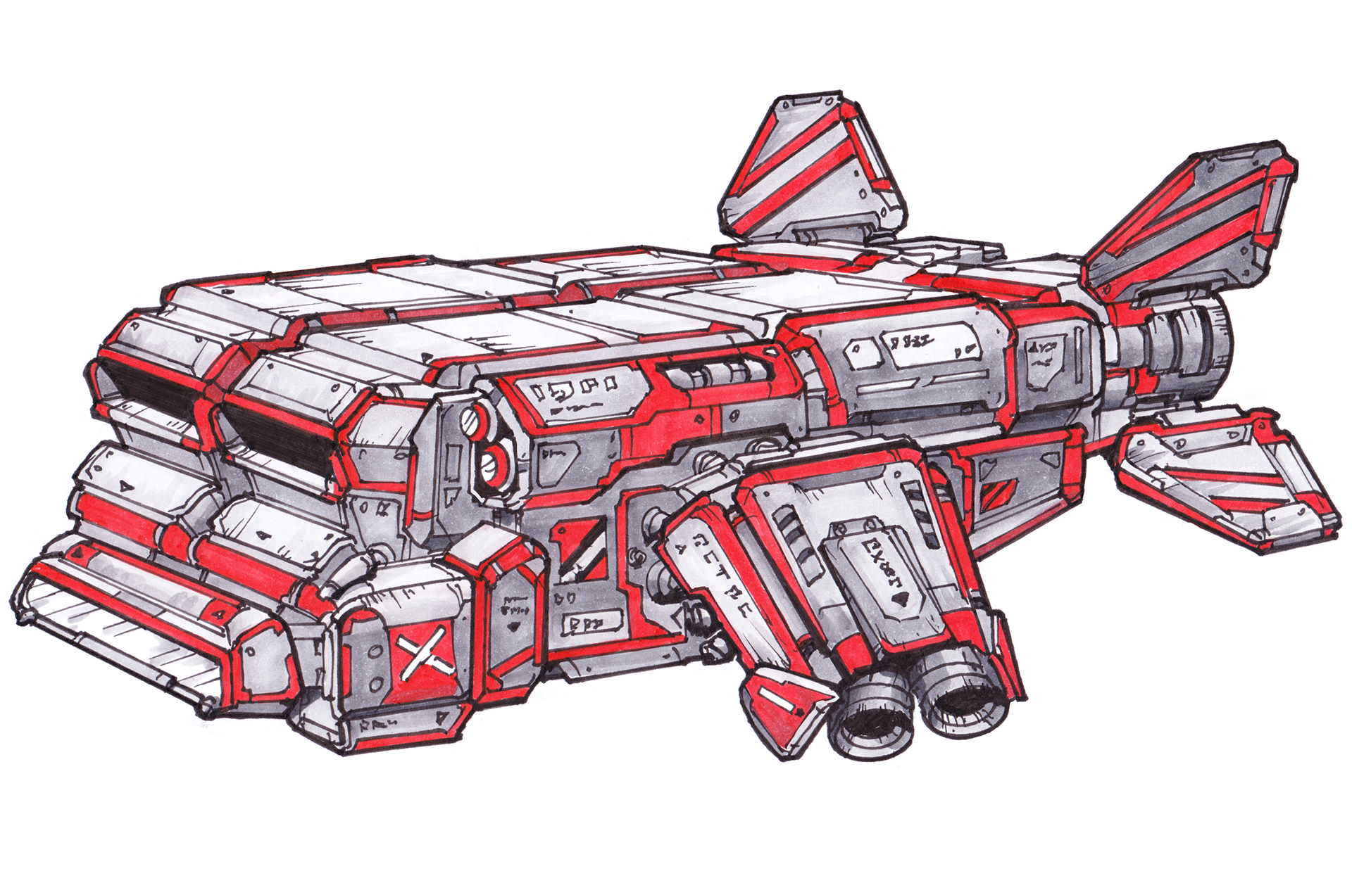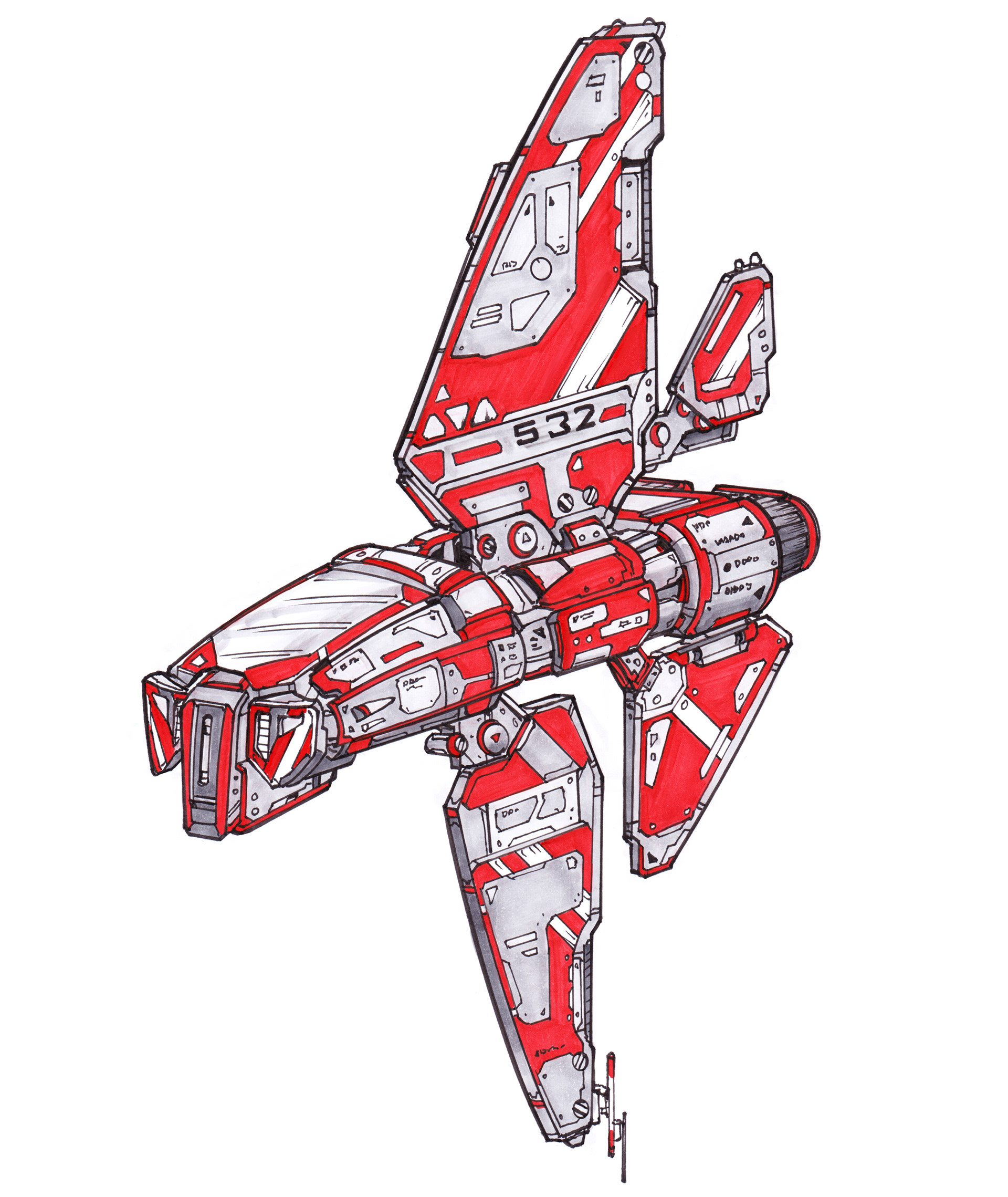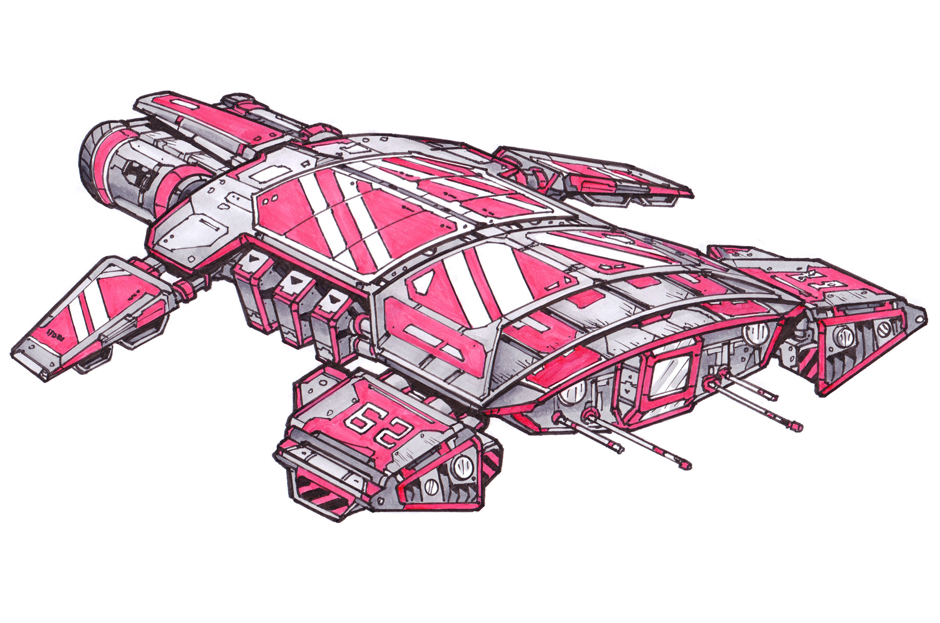 Flat starships can be fun to draw, but space IS three-dimensional. Unless you're Michio Kaku. Here are some spaceships drawn in pen and colored with Copics!