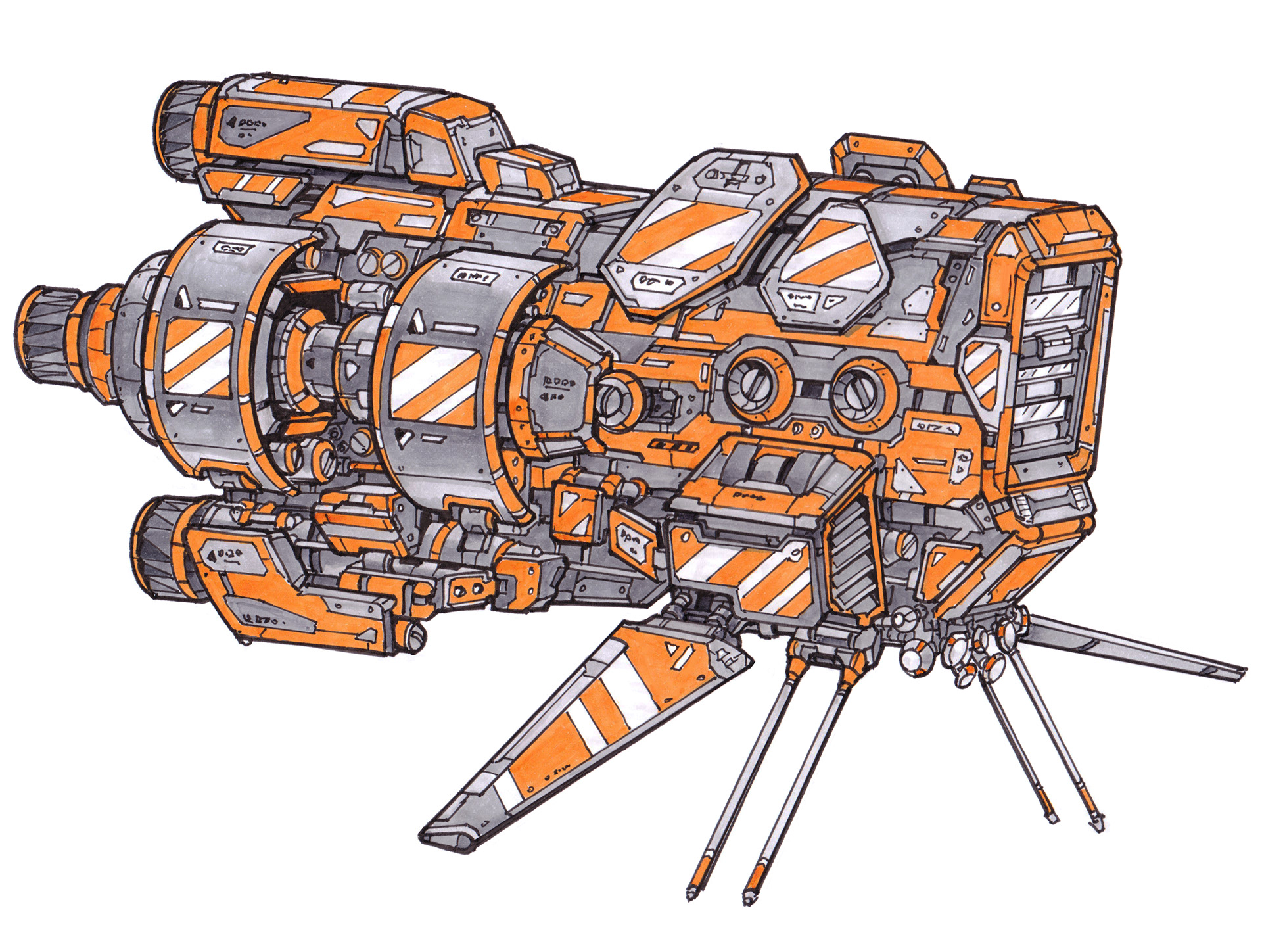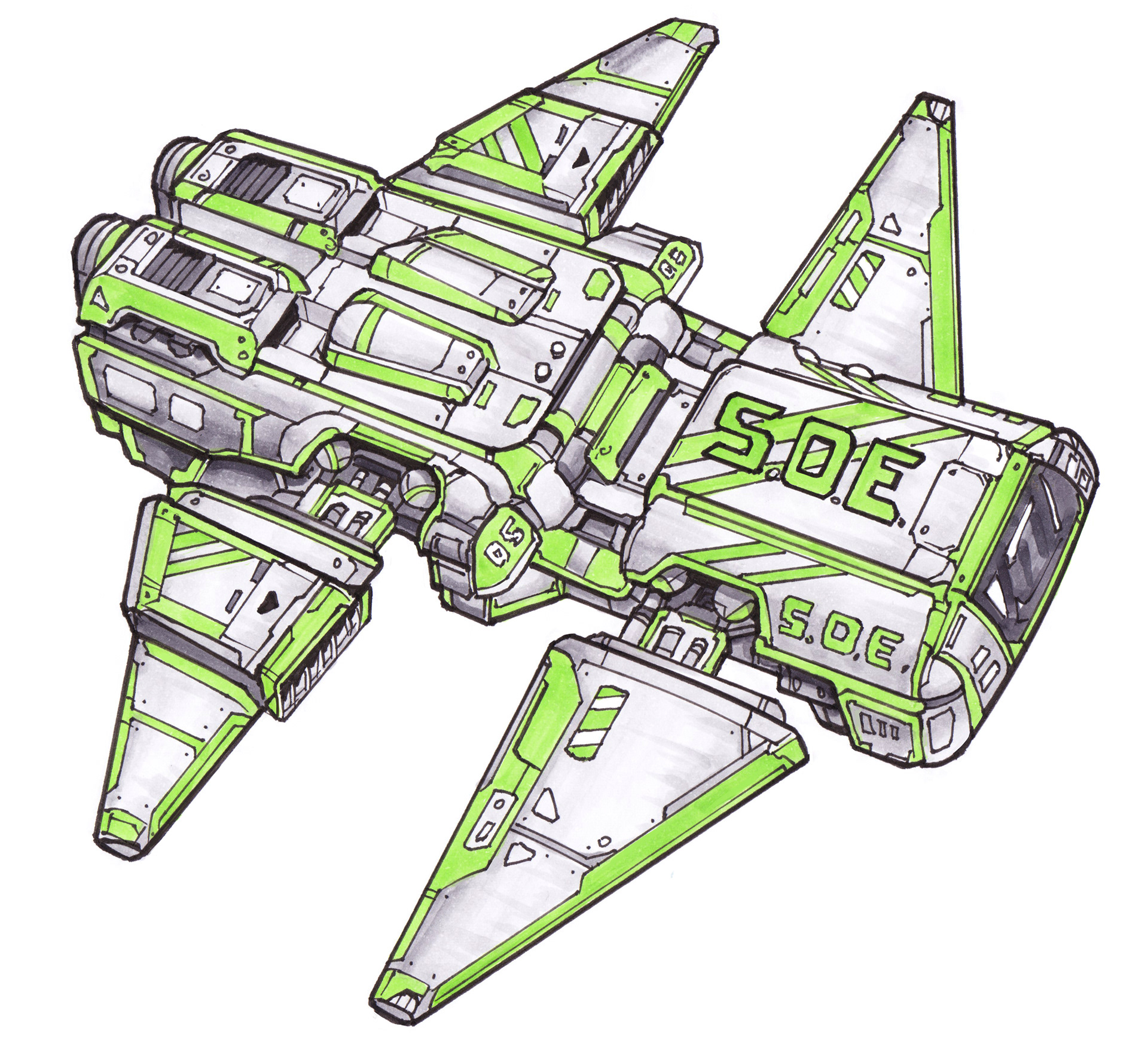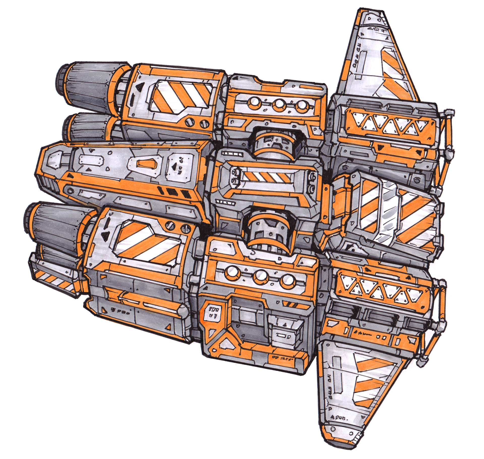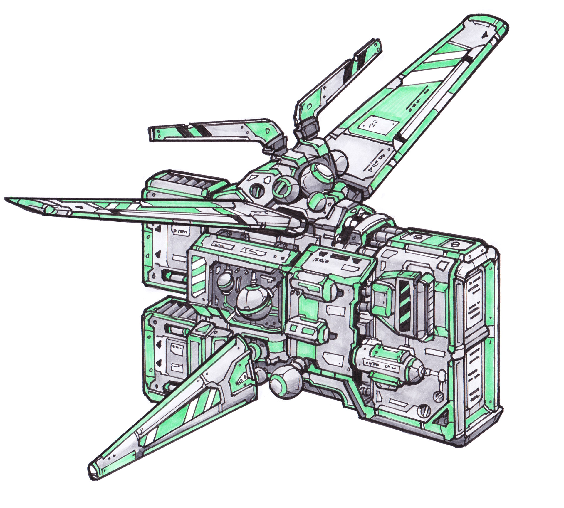Flat starships can be fun to draw, but space IS three-dimensional. Unless you're Michio Kaku. Here are some spaceships drawn in pen and colored with Copics!