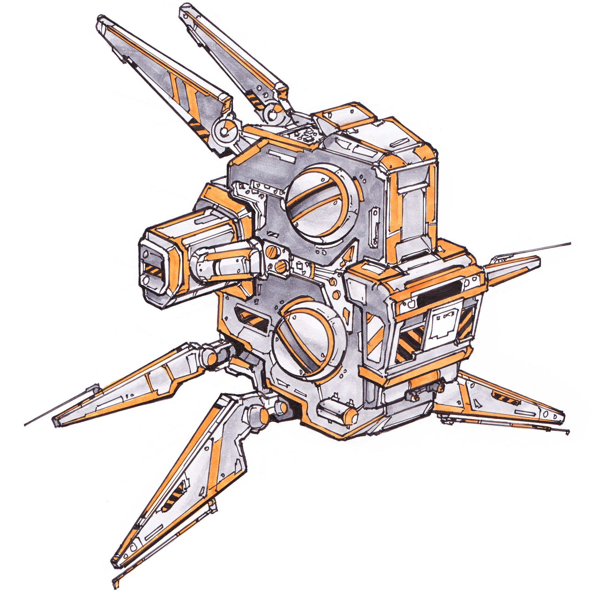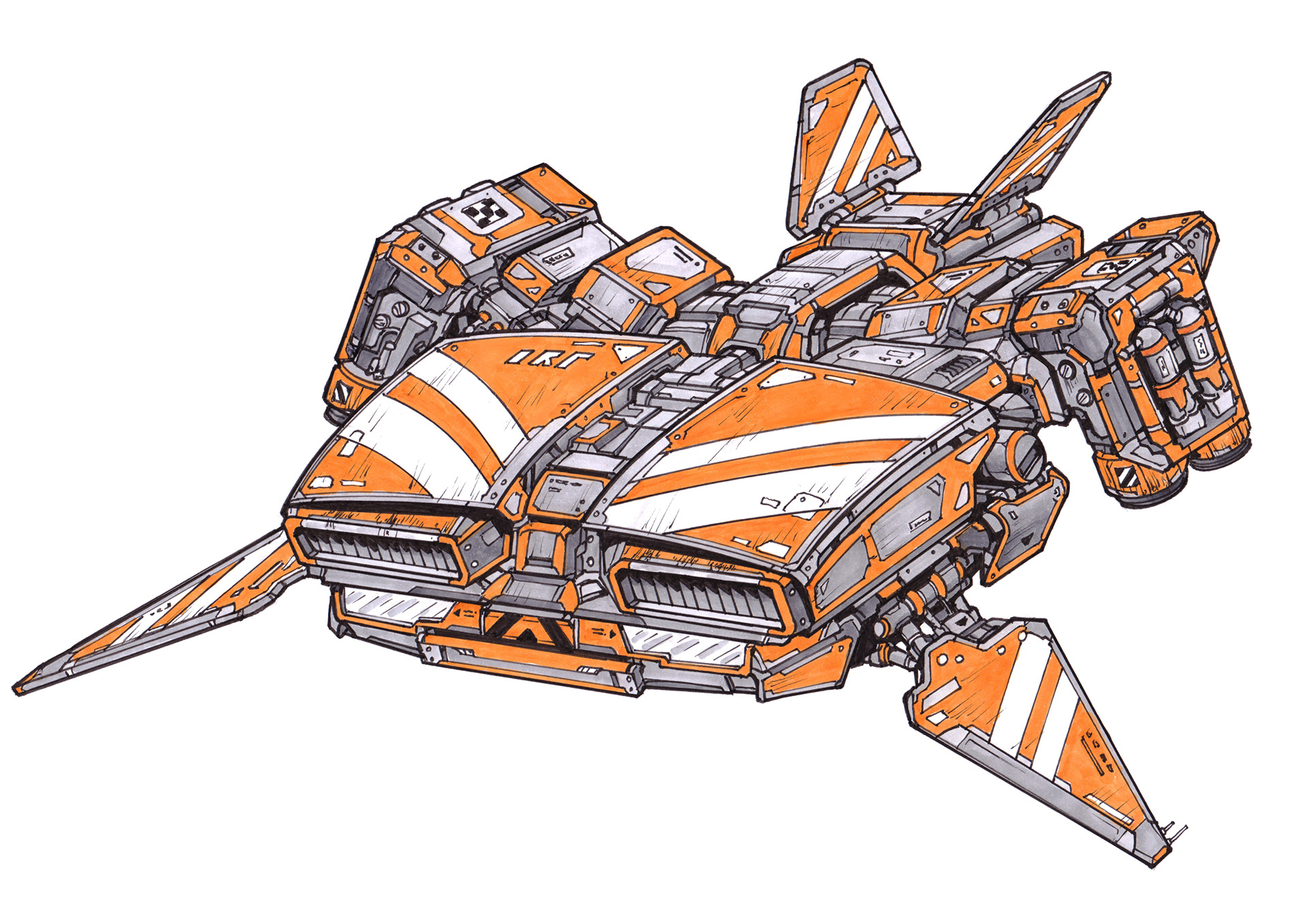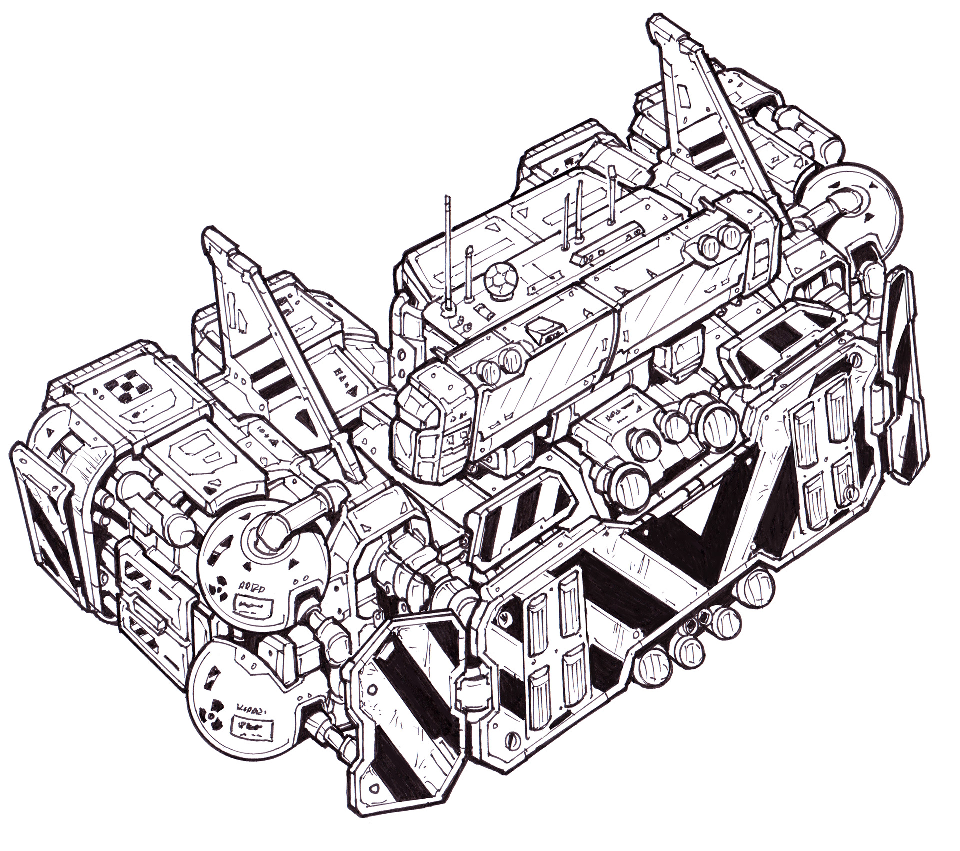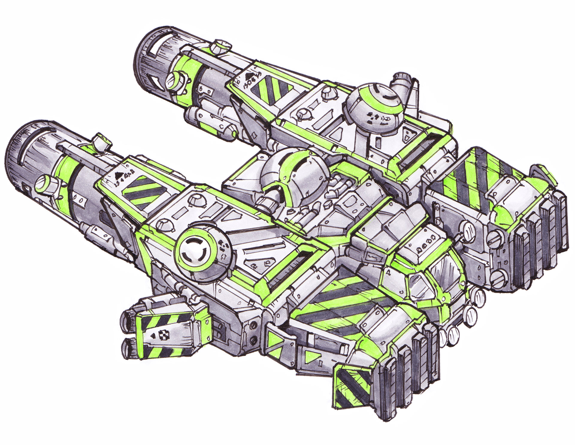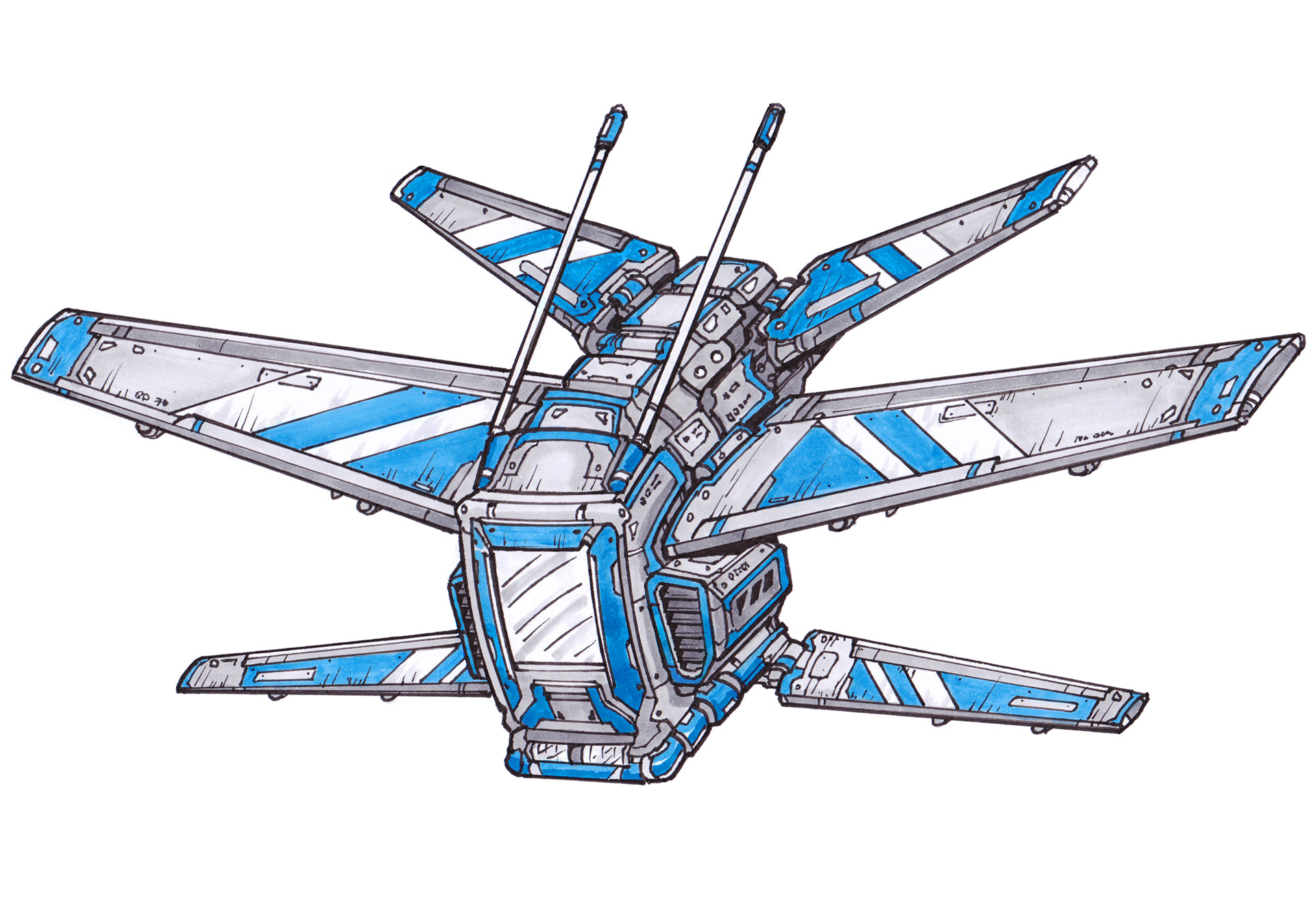Flat starships can be fun to draw, but space IS three-dimensional. Unless you're Michio Kaku. Here are some spaceships drawn in pen and colored with Copics!
