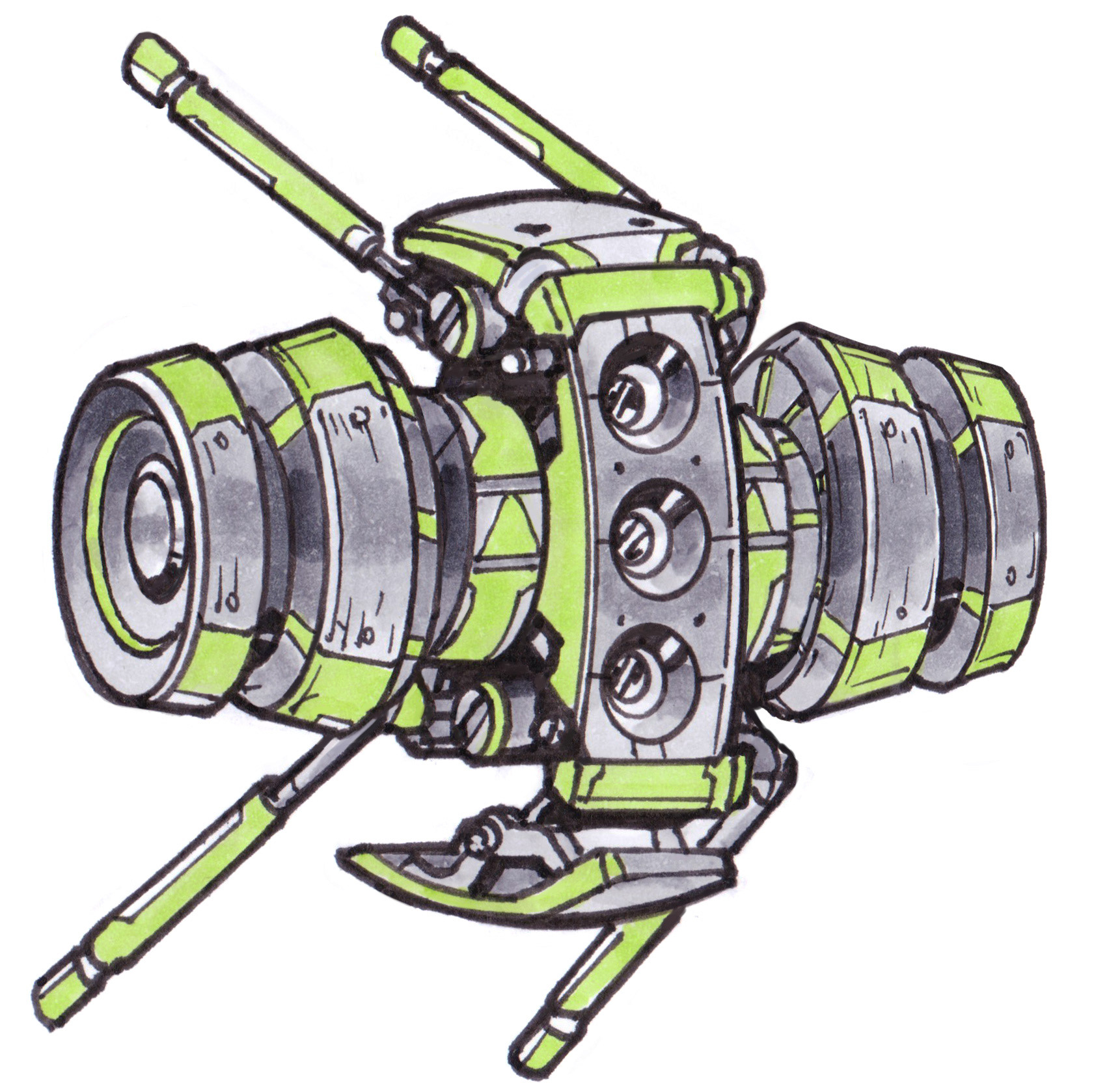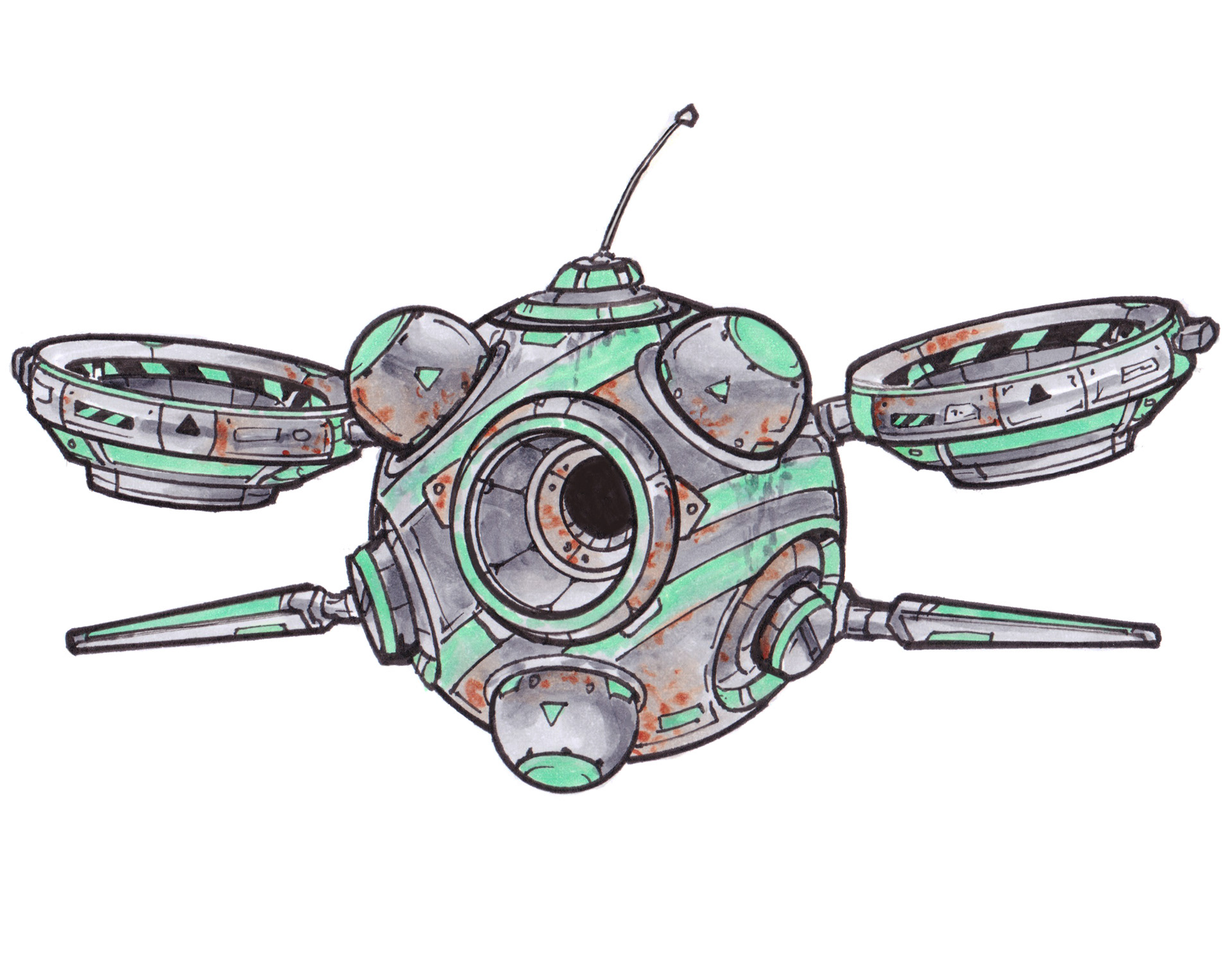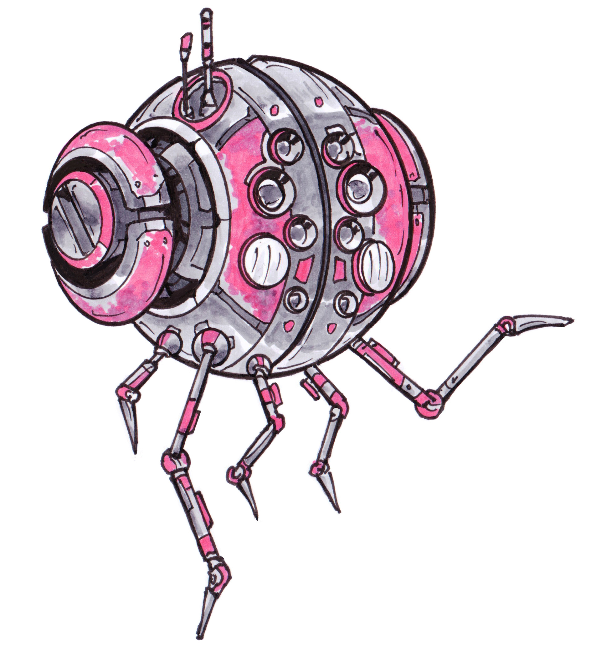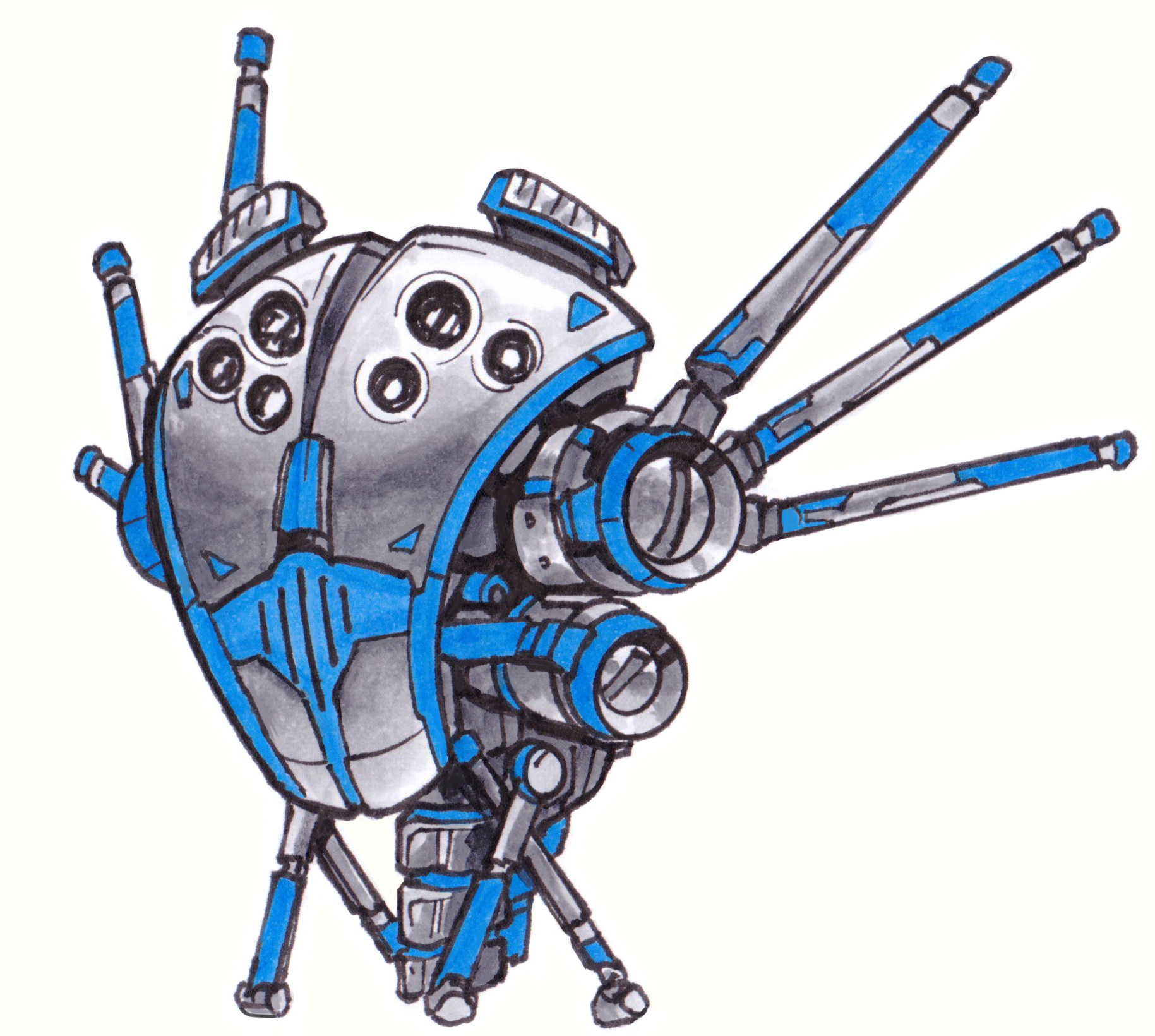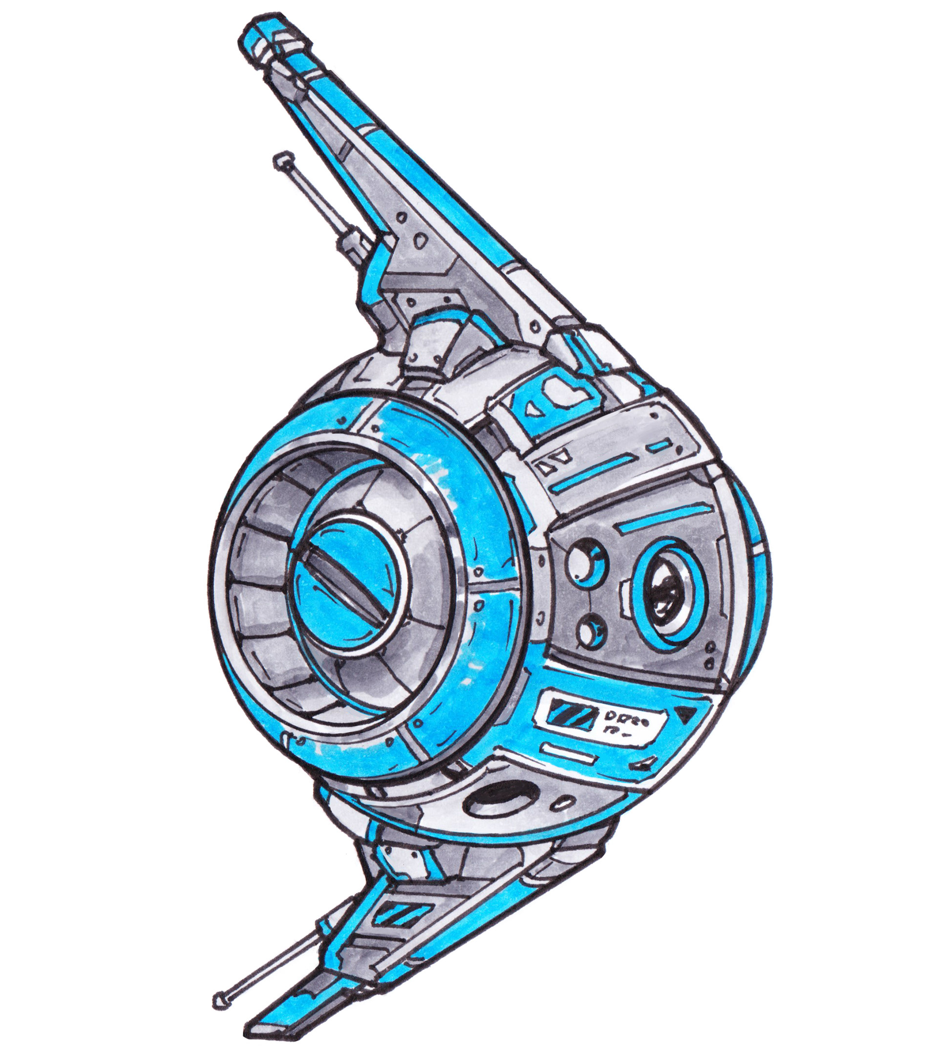 These anti-grav drones buzz, chug, or rumble around while they go about their little sci-fi tasks. Drawn in pen and colored with Copic markers!