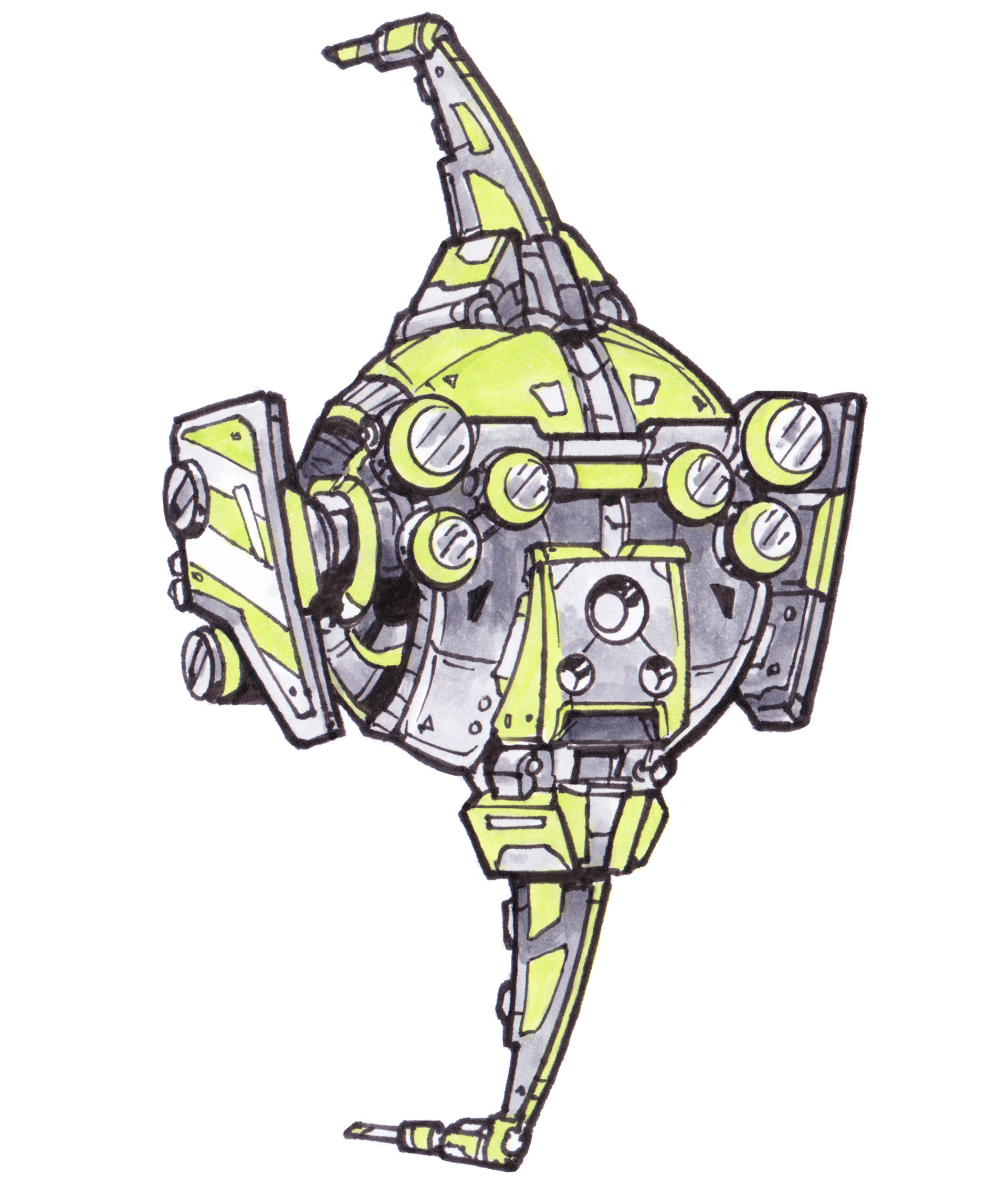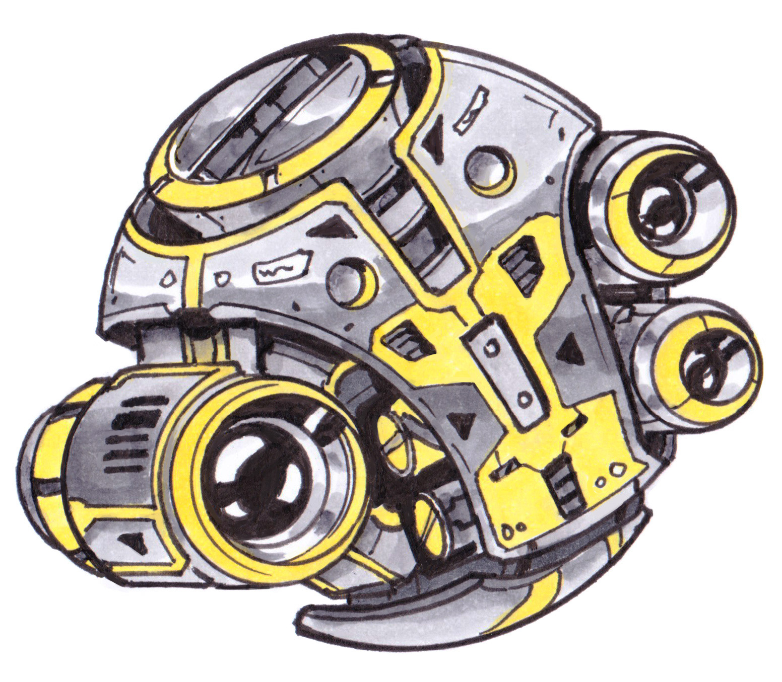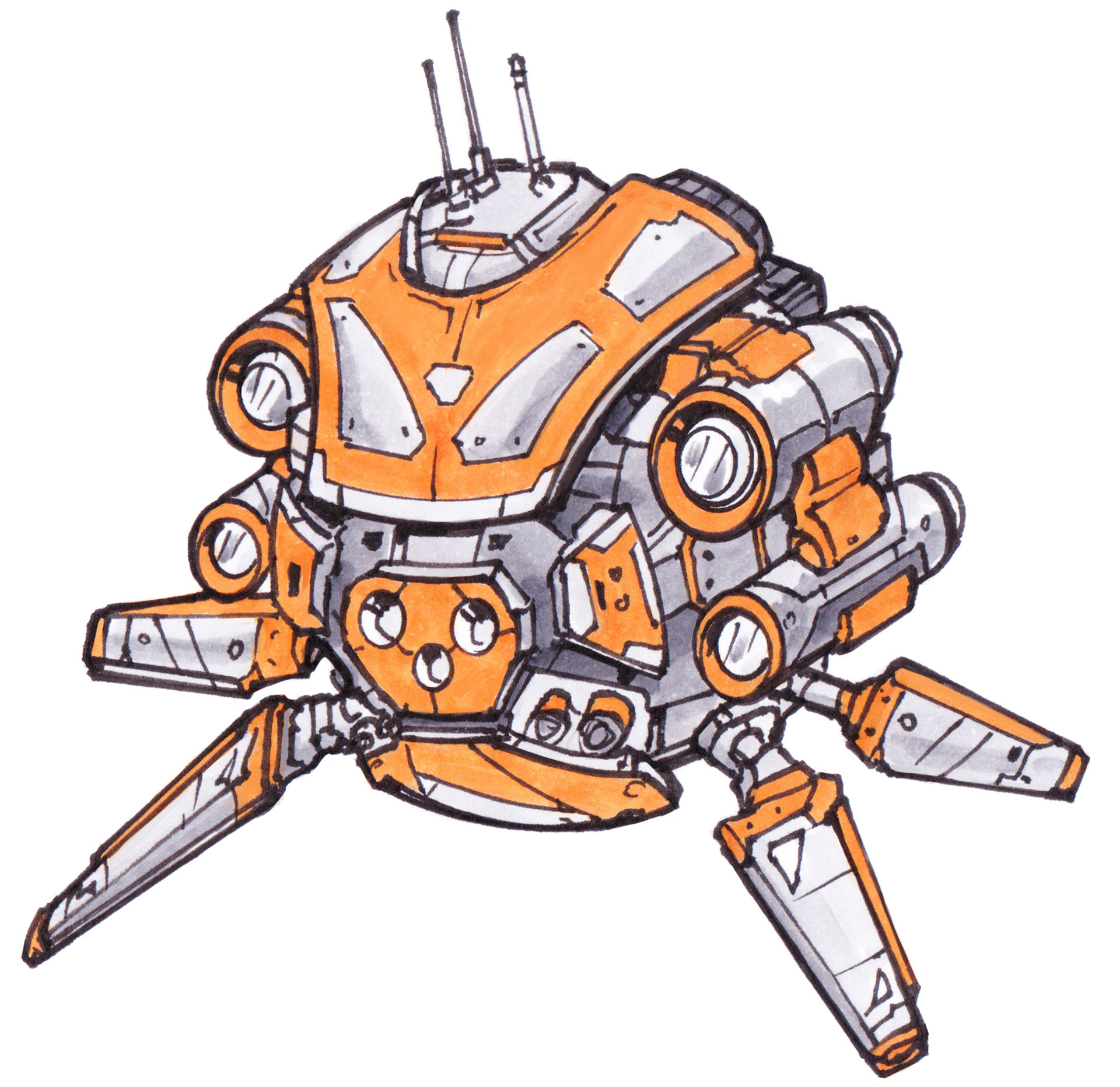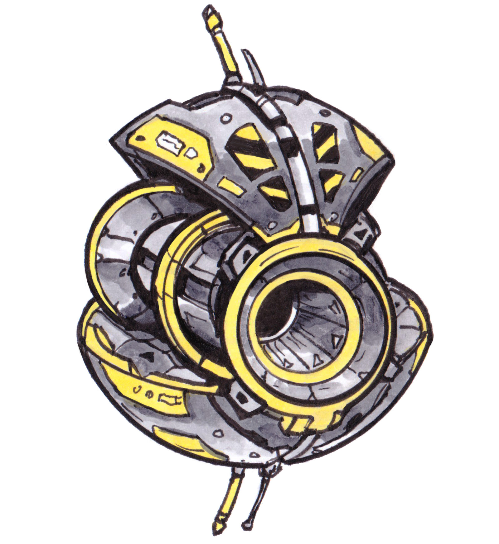 These anti-grav drones buzz, chug, or rumble around while they go about their little sci-fi tasks. Drawn in pen and colored with Copic markers!