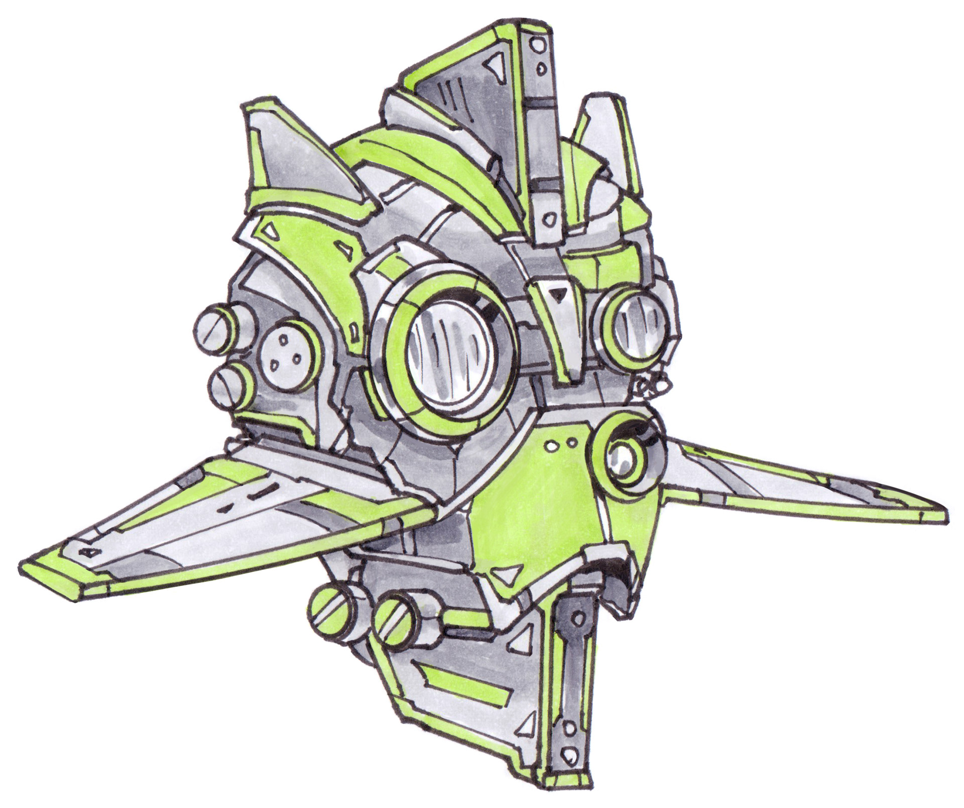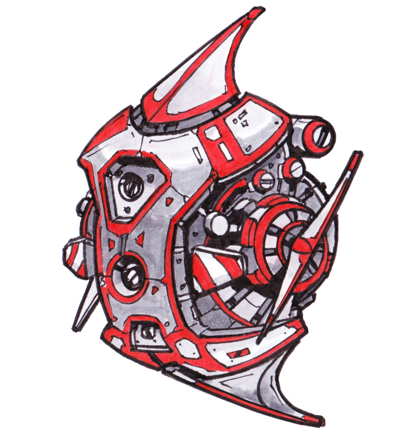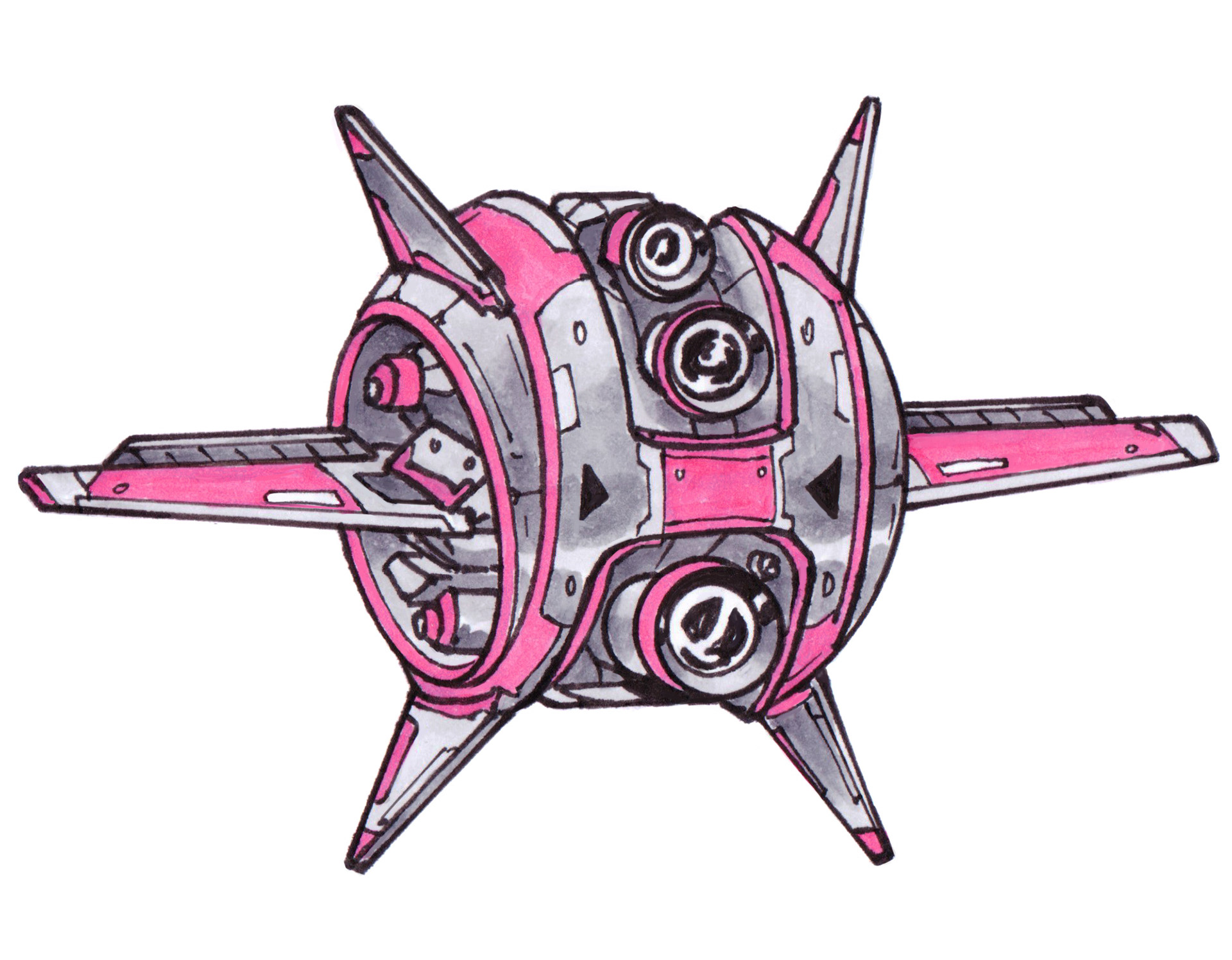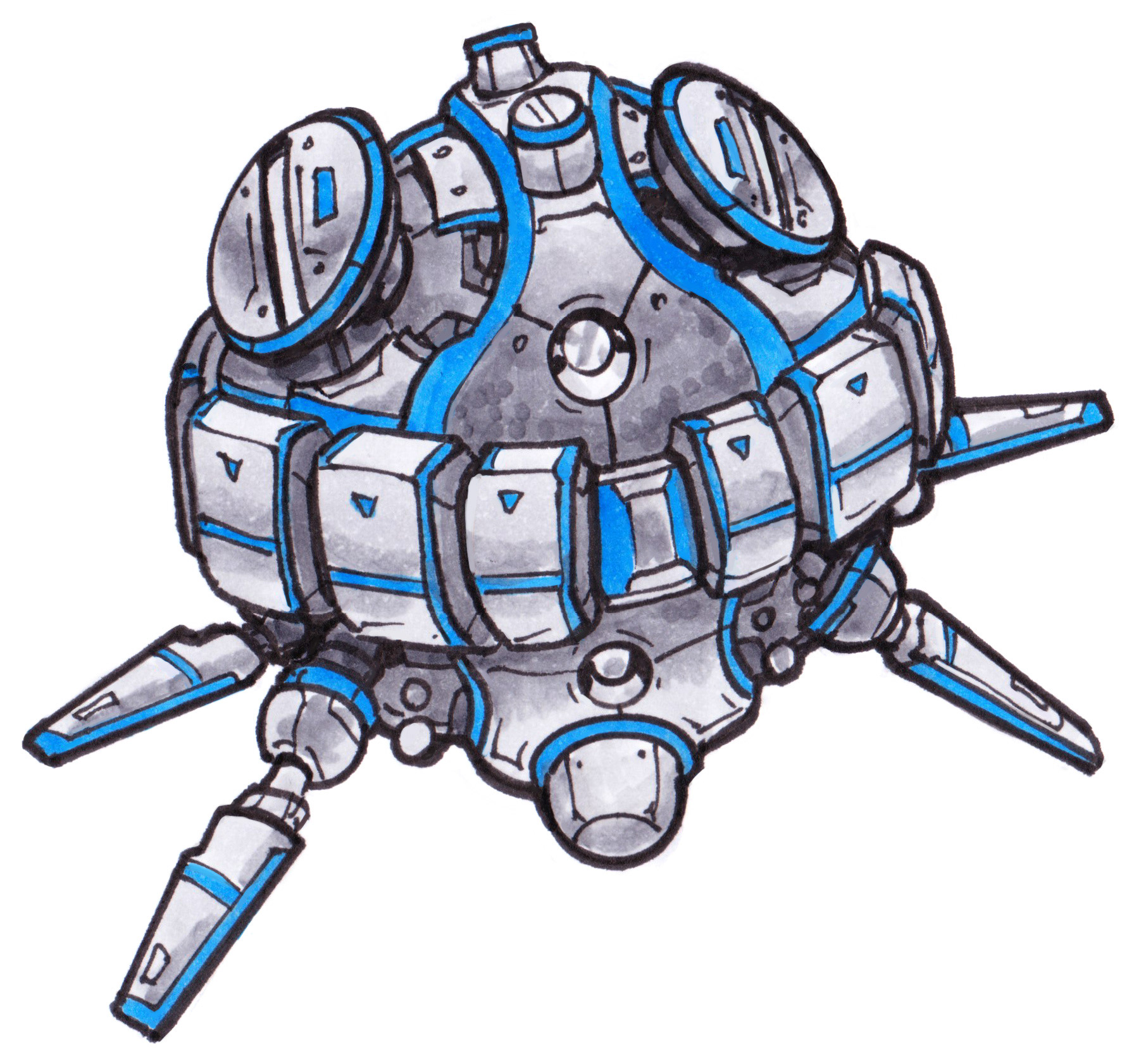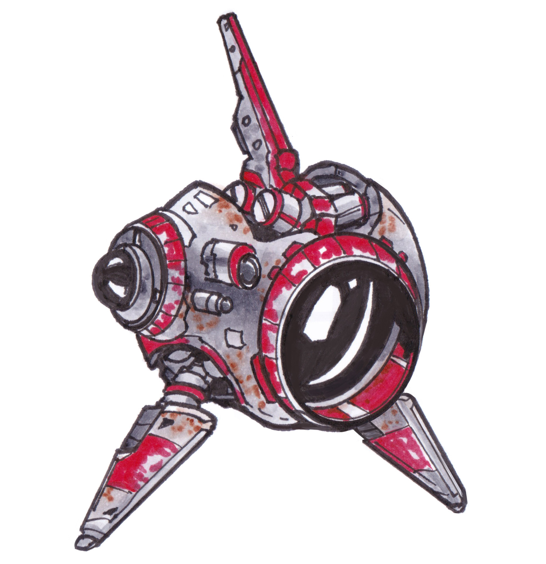 These anti-grav drones buzz, chug, or rumble around while they go about their little sci-fi tasks. Drawn in pen and colored with Copic markers!