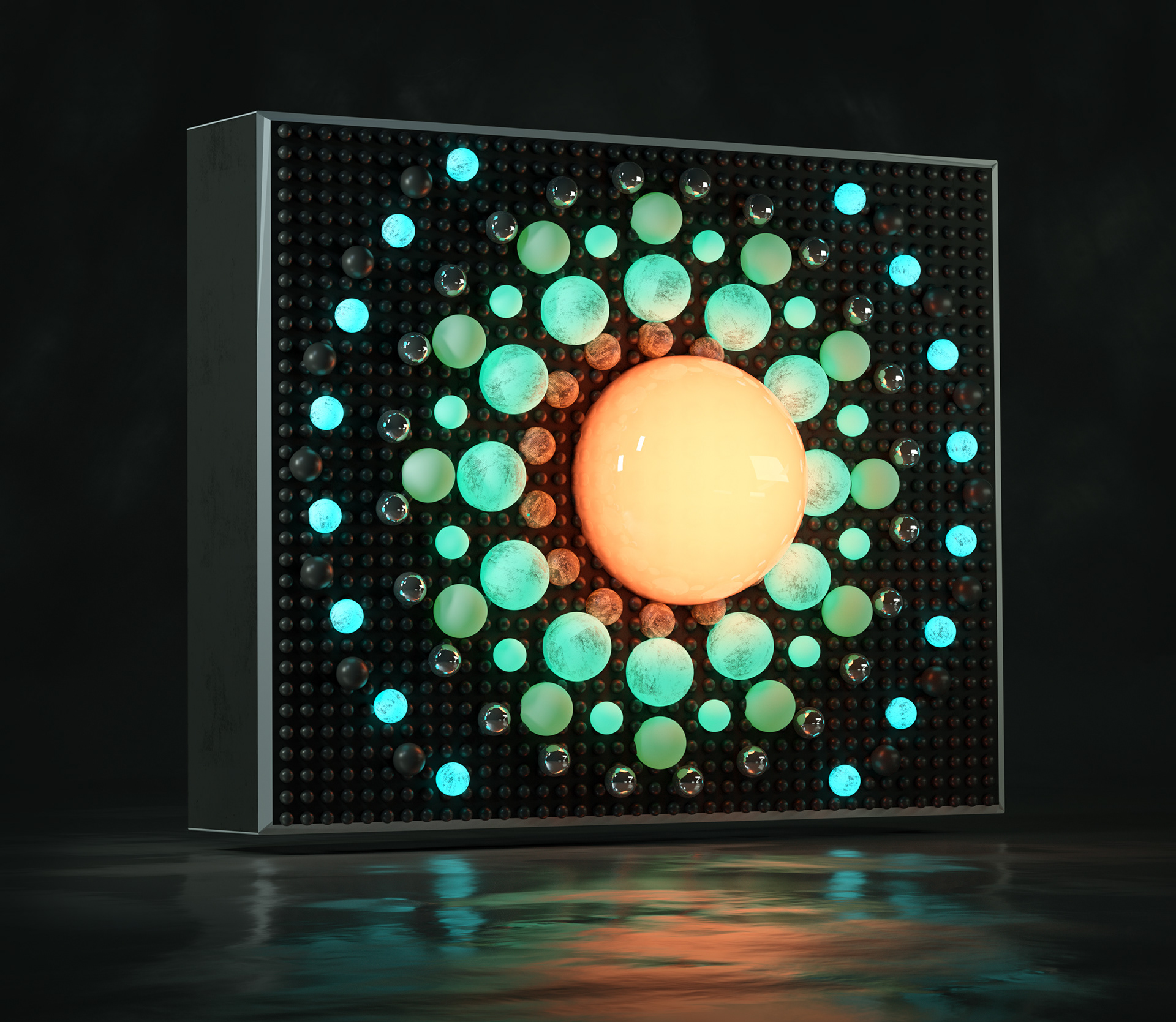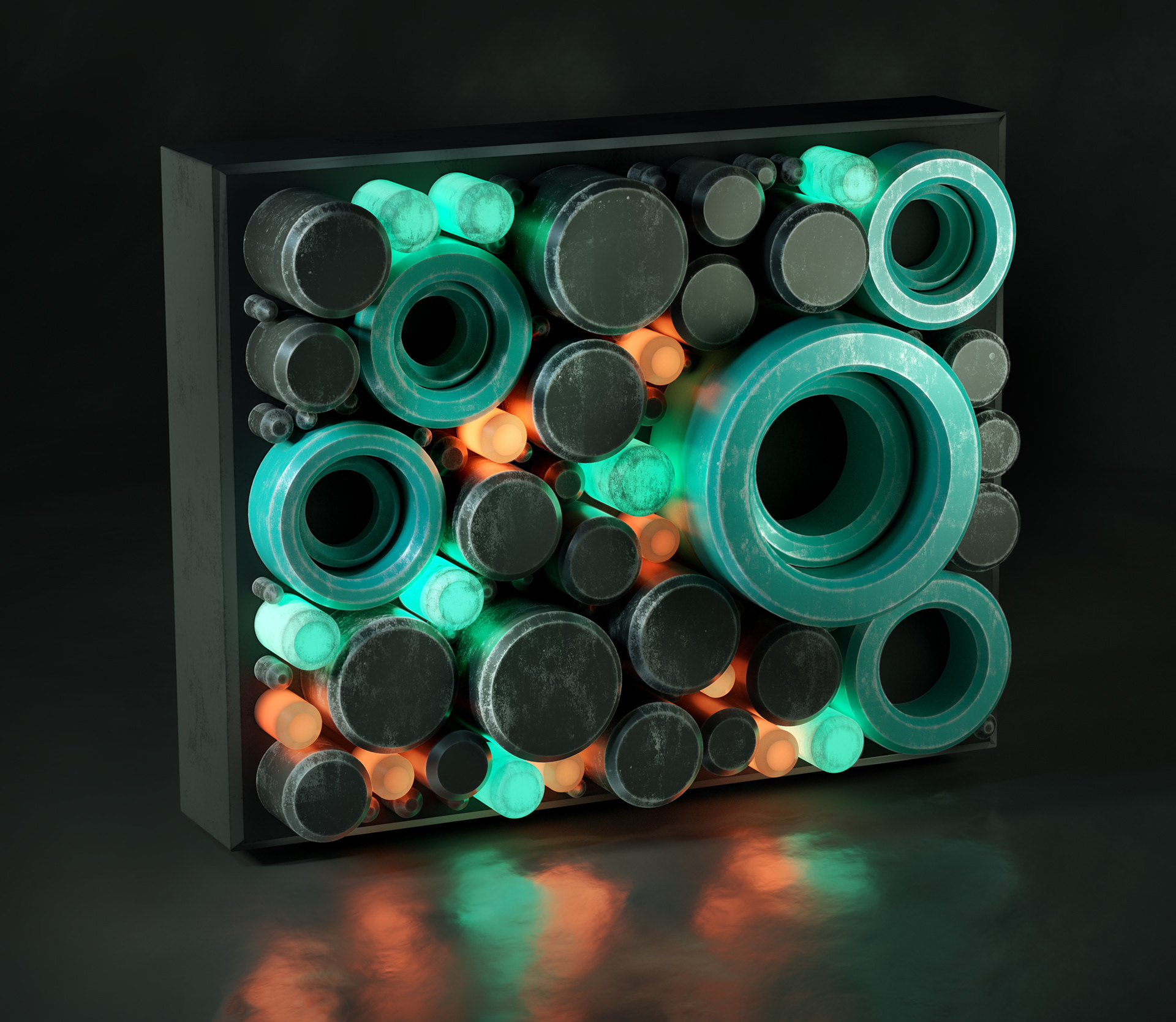 The Space Box project affords me an intentionally limited workspace in which to experiment with materials and composition. Created in Cinema 4D + Octane.